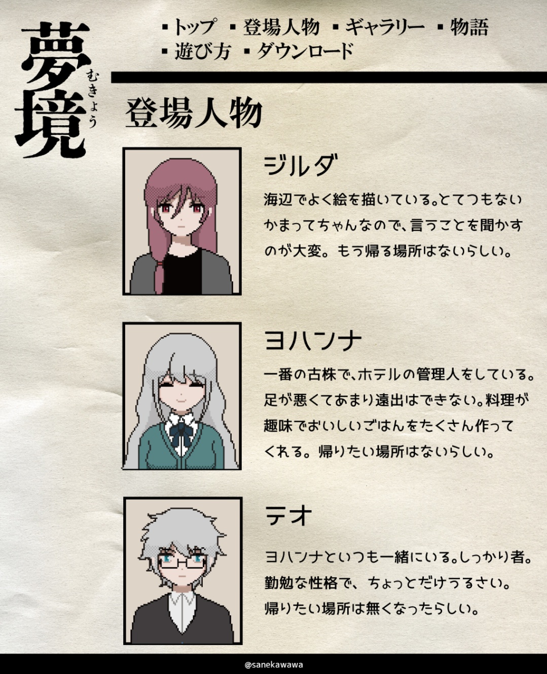 一番私が調子が良かった2023年にやっていた創作です。11万字書いていて、小説は未完で止まっています。一番調子が良かったので解説資料と絵がいっぱいあります。本当にこれをちゃんと作って私の創作を知ってね~とやっていた私は偉い。