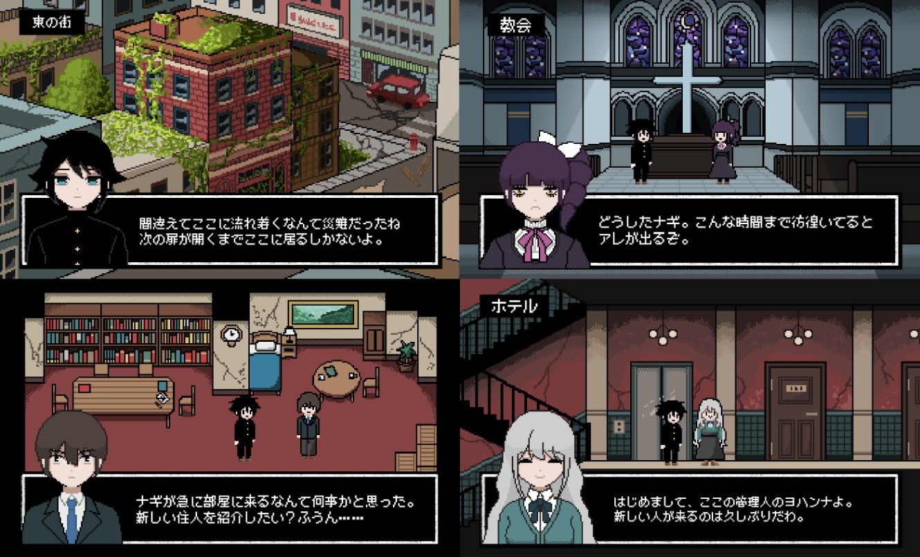 現実世界に居場所のない人たちが集まって、最終的に現実に立ち返るというお話になるのですが、この創作は2016年の頃から存在がある古い創作です。2016年頃の私は本当にうつ病でどうしようもなくずっと苦しんでいたのですが、そんな中作った創作なので創作キャラが大体メンヘラです。現実じゃない何処か別の世界で不安に思わずに暮らしたい、でも現実とは向き合わないといけないという気持ちが強くでているなと思います。