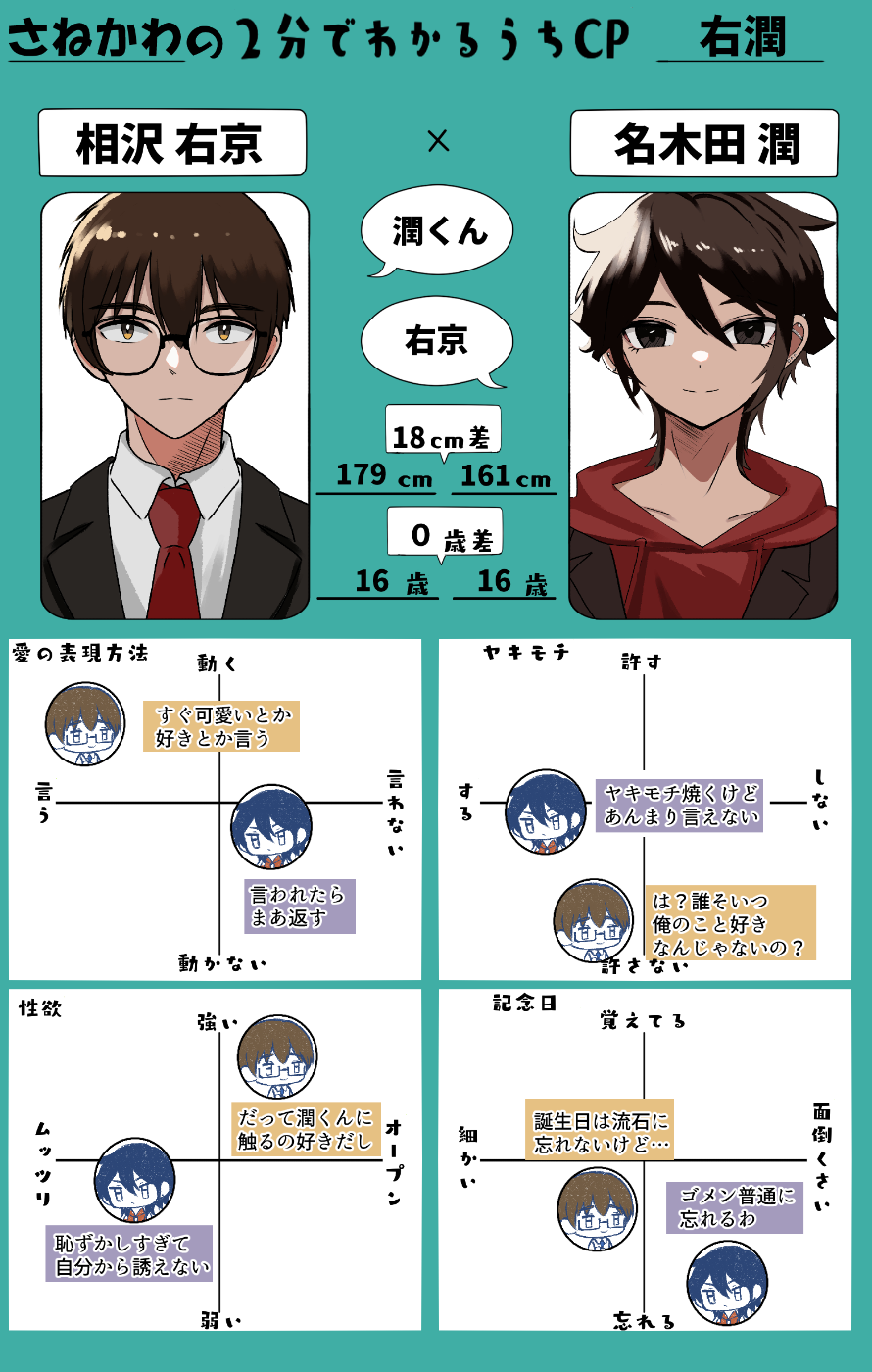 同キャラでもIF世界線とかで環境変わると性格が変化するので、フラットな状態の魂の核みたいなものが一応あり、一番平均値が楽屋の魂に反映されています。キャラクターが創作世界に入っているときは、役を演じてもらっているという状態なのです。下記記事に楽屋状態のキャラクターに、プロフィール帳を書かせていたりします。