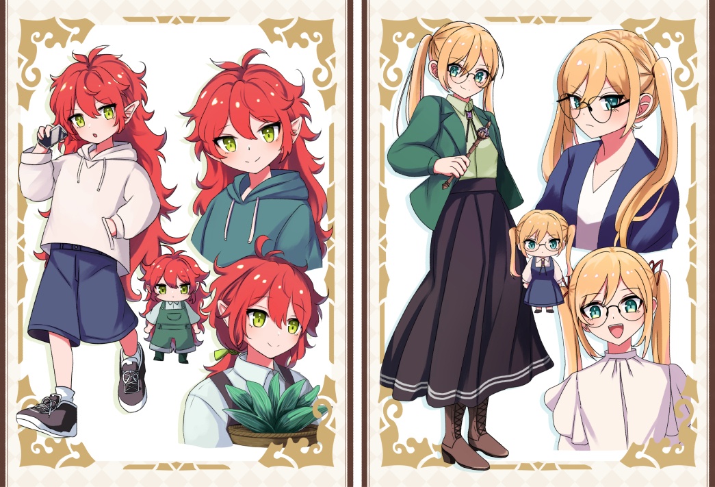 ↑久々に自創作キャラのジェイミーとカミラを描きました。2023年に描いてた頃のキャラシを一応見ながら描いたのですが、目の描き方とか若干変わったなと思いますね。