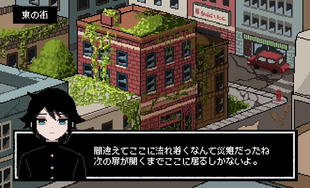 夢境は無いゲームなので、主人公として夢境の住人たちと接して彼らを現実世界に帰し、自分も現実世界に帰るルートと、夢境に残り続けるルートがあったような気がします。2016年あたりは私がうつ病の大メンヘラだった時期なので、記憶があんまり残っていなくてあやふやなのと、PCを買い替えた時に夢境のテキストデータがほぼ消滅していることもあり、2016年の夢境のことをはっきりと思い出すことが出来ません。上記のドット絵を起こしたのは2023年なのですね。2023年の夢境では潤は男の子に性別が変更されています。星の血族という創作をやっていた時が2021年で、この時には既に潤が男性として描かれているのですが、私は名木田潤が男性に性別が変更されたのがいつなのか全く覚えていません。でも名木田潤が女性より男性のほうが萌えるよねと思って、性別を変更しているのは確かです。