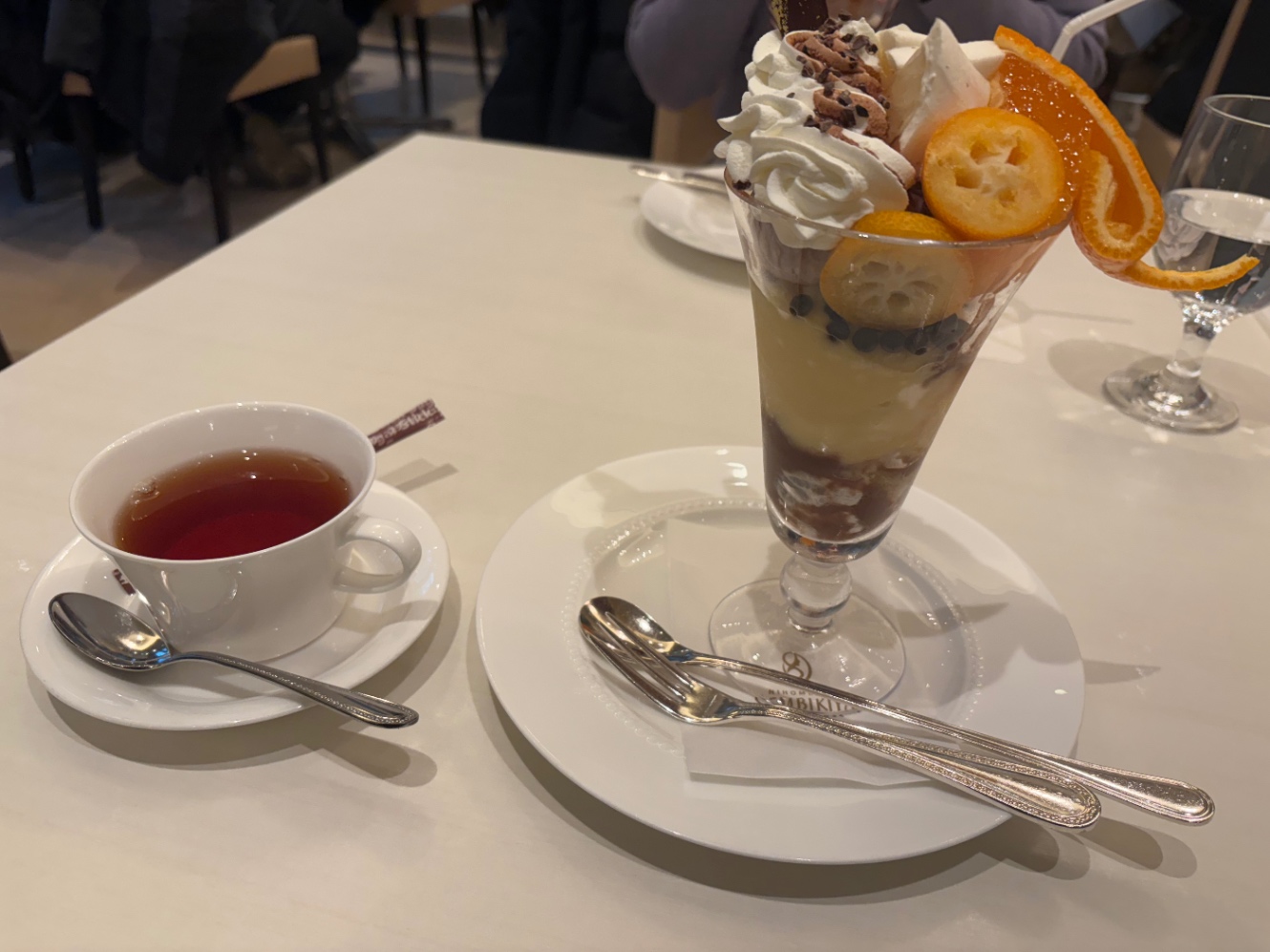 そのあとはパフェ食べた。これは千疋屋のバレンタイン限定パフェ、おいしすぎ。チョコレートとオレンジが合わないわけないんだよな~……私の住んでいるところにも来てくれないか?(2回目)