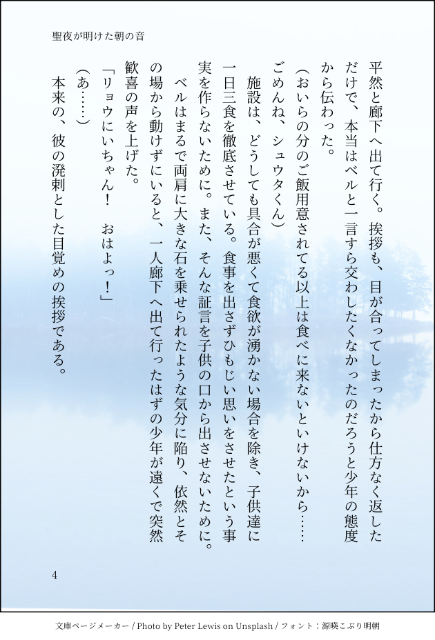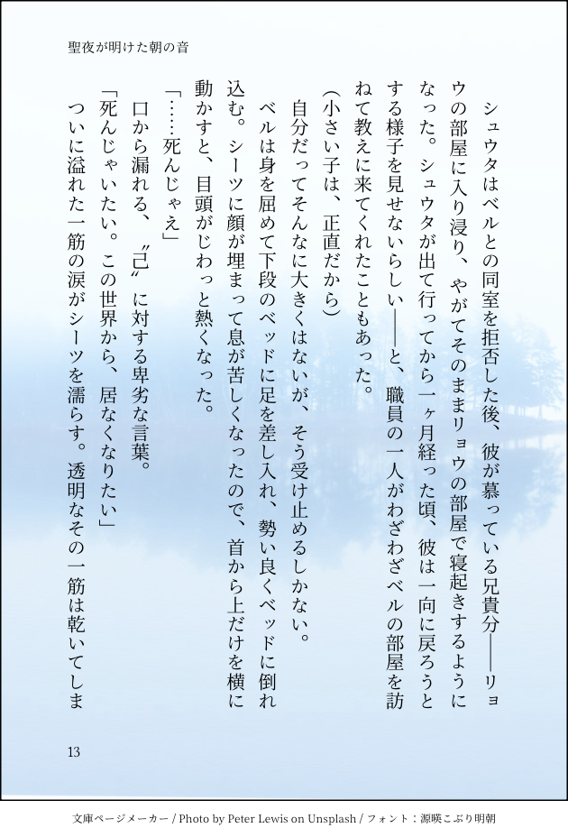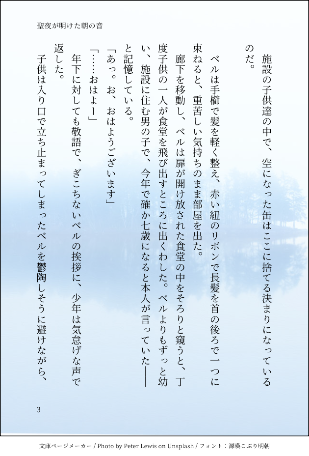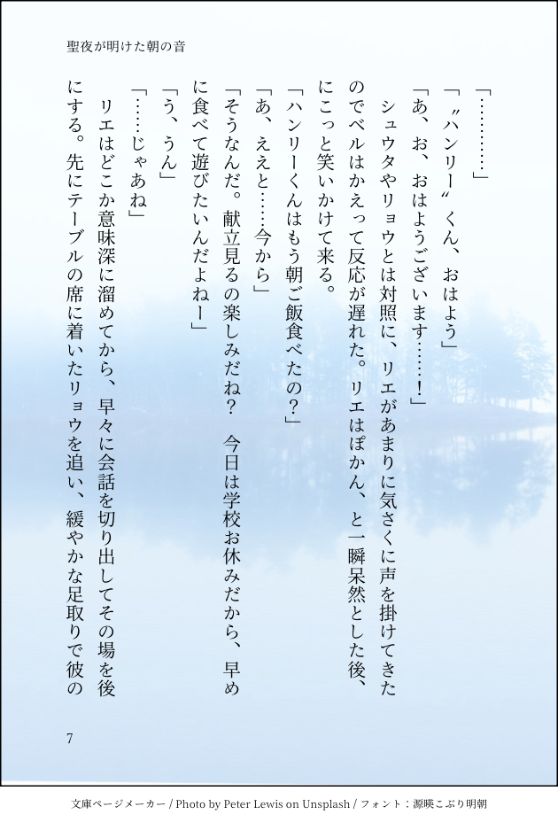 前話→https://sizu.me/namina/posts/4a0wmr7hx52aハンリーベル、で一つの名前です。次話→https://sizu.me/namina/posts/mhdde2nwtt2a一次創作聖明けなみな文庫メーカーさんを使いたくて自作小説を始めました。一次創作と二次創作。ふわっとアップしに来ます。作りたてのミクシ~ mixi.social/@suzu_nami