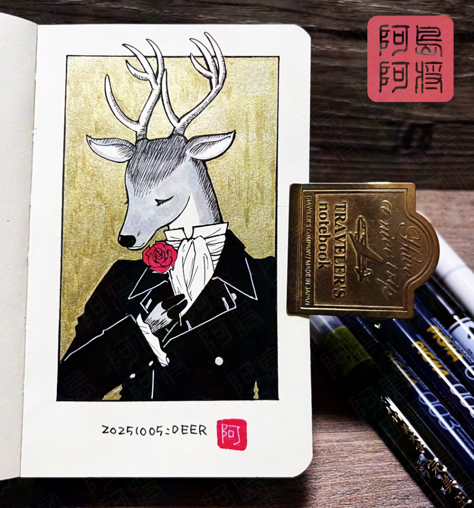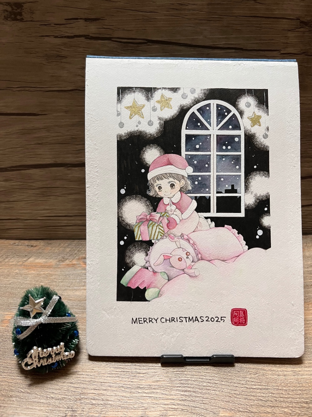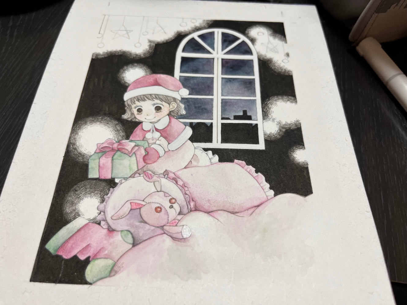 金銀はコピックアクレア、ホワイトもアクレアと白筆ペン。色鉛筆(マルチ8)でちょいちょい整え。