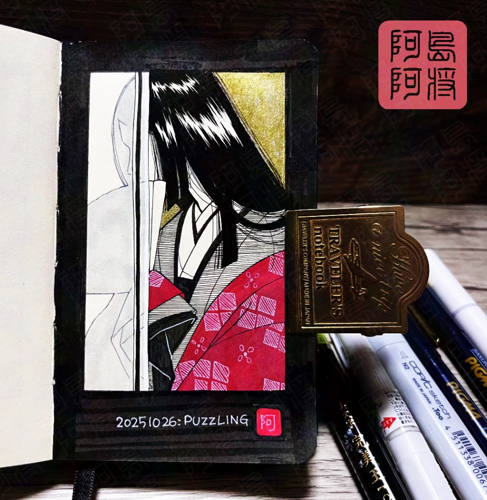 毎日続けるためには極力簡便にしようと思ったので、モノクロ+赤+金銀のみという縛りを付けました。なお一日だけカラー。