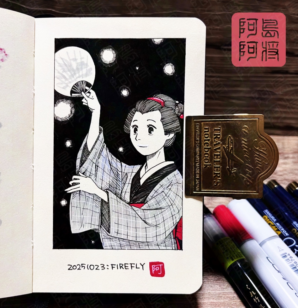 線はマルチライナーとピグマ。つけペン使うのに越したことは無いんだけど部屋発掘しないとペン軸が出て来ないです。もう35年近く前に買った私のペン軸よ、どこへ行ったんだ?