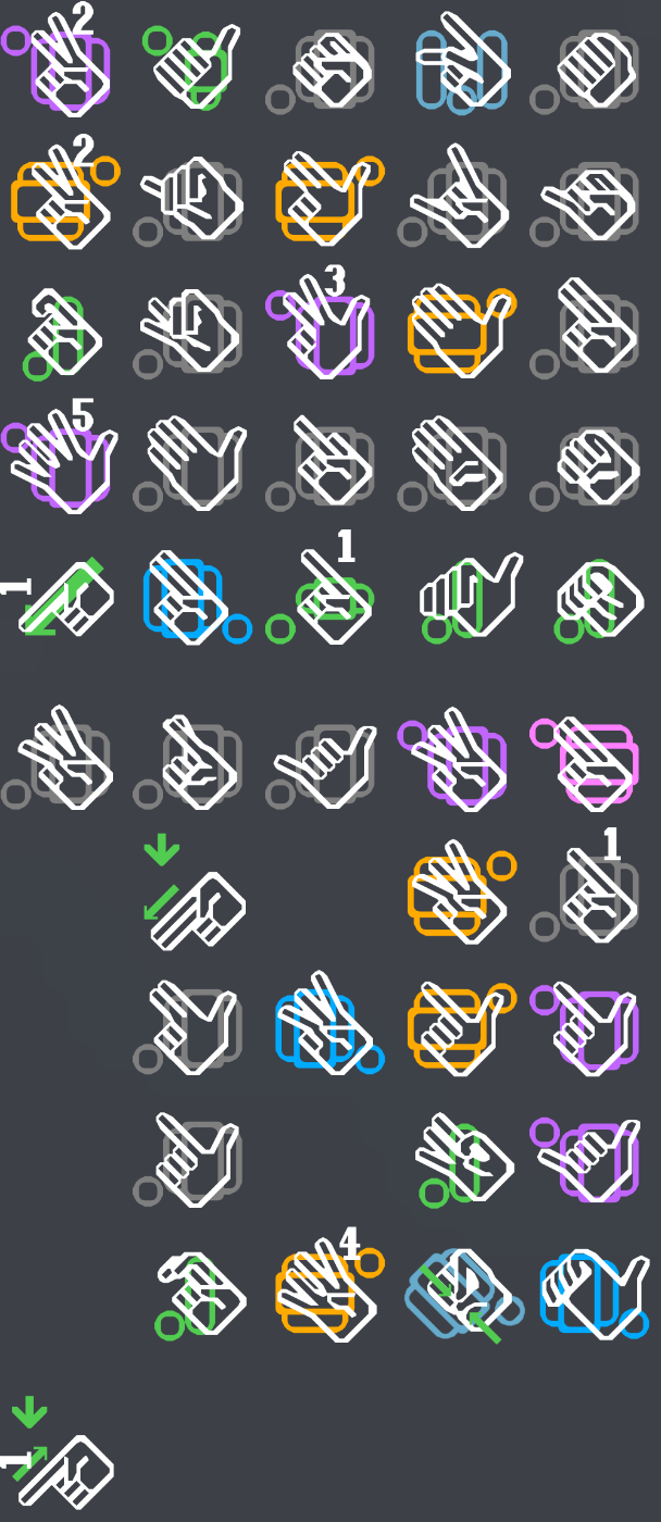 ASL(アメリカ手話)の指文字の手形とその変形をもとに色々記号を足してそれなりに色々表現できるしかけ