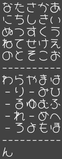 試し打ちで0〜9とa〜zとA〜Zを打つとこんな感じ(基本の手形は小文字の方、あとJとZは別のタイプの記号に割り当てられてる)
