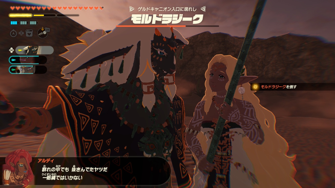 カラモはPV時点ではそこまで重大なキャラクターではないと思っていましたが、、狂言回しの役割だったので驚きました。声質的にも当初は物語から浮いているように思ったのですが、彼も彼でTotKにおける象徴的な要素である「旅するコログ」を戦いとシナリオに落とし込んだキャラクターだったので、使用感も相まって私はとてもすきになりました。