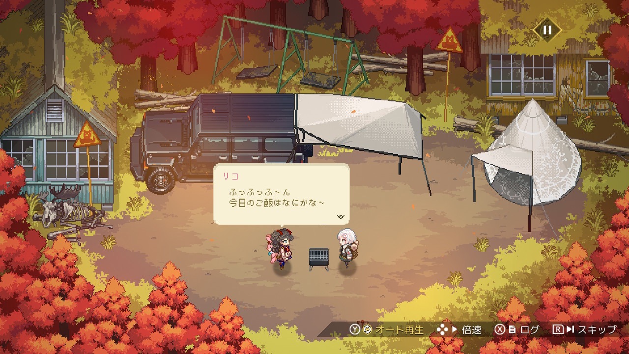 旅の途中で街に着いたら一時的な拠点としてキャンプグッズ広げて休息タイム。このシミュレーション要素が可愛くていいなと思って買った。ゆくゆくはご飯も作れるみたいで楽しみ。