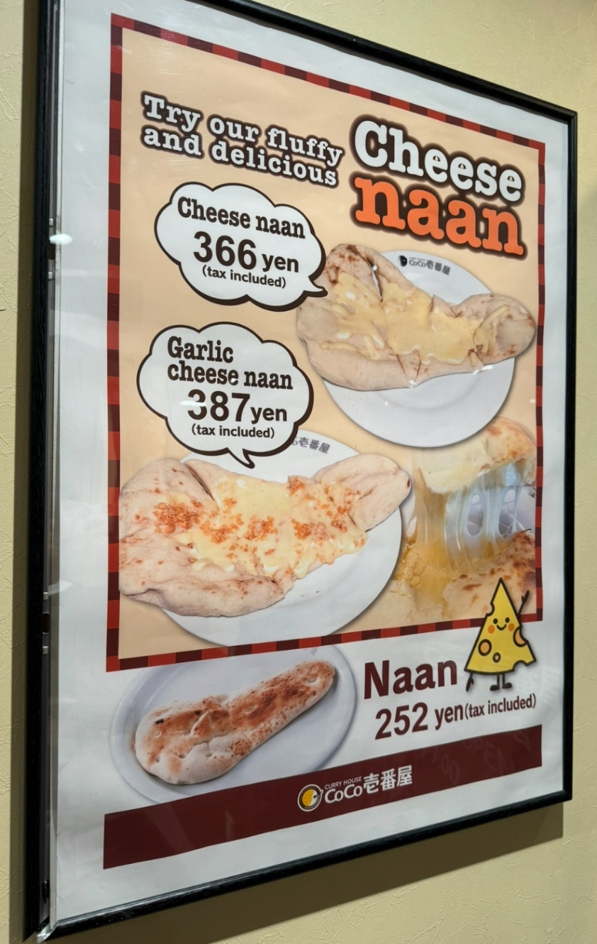 チーズナンってCheese naanナンだ。Naanもナーンかいいね