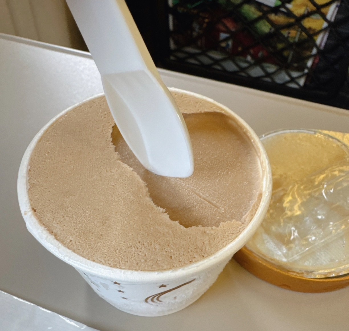 ニナスでテイクアウトのロイヤルミルクティー味ソフトクリームを頼んだらこの状態で渡されました。まじぃ?