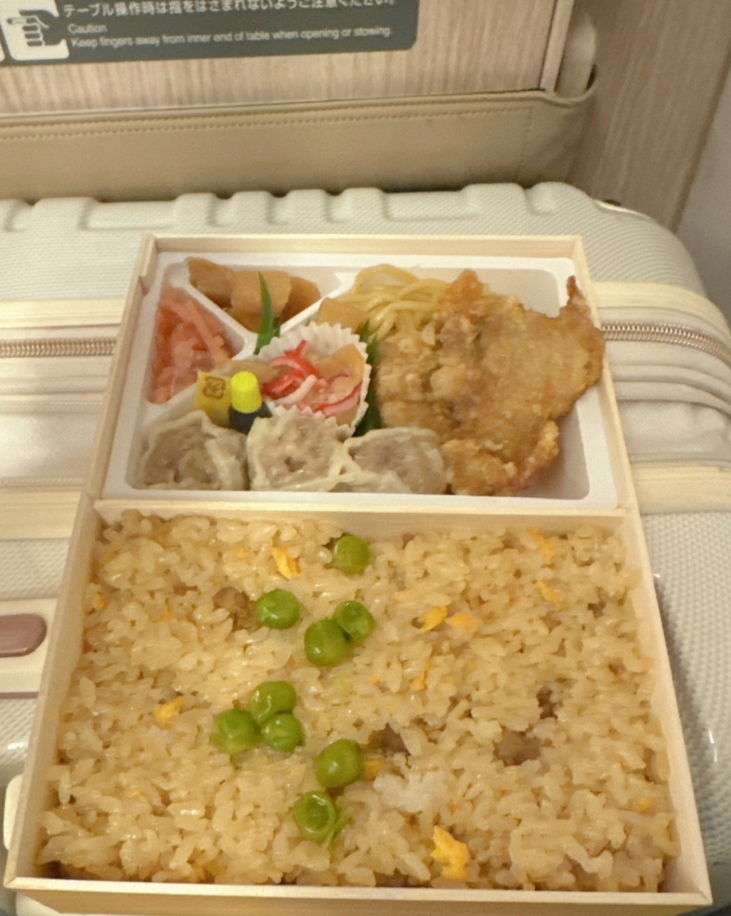 崎陽軒の炒飯弁当もおいしいと聞いたので。おいしかったです。クラゲの酢の物がいくらでもイケるおいしさ