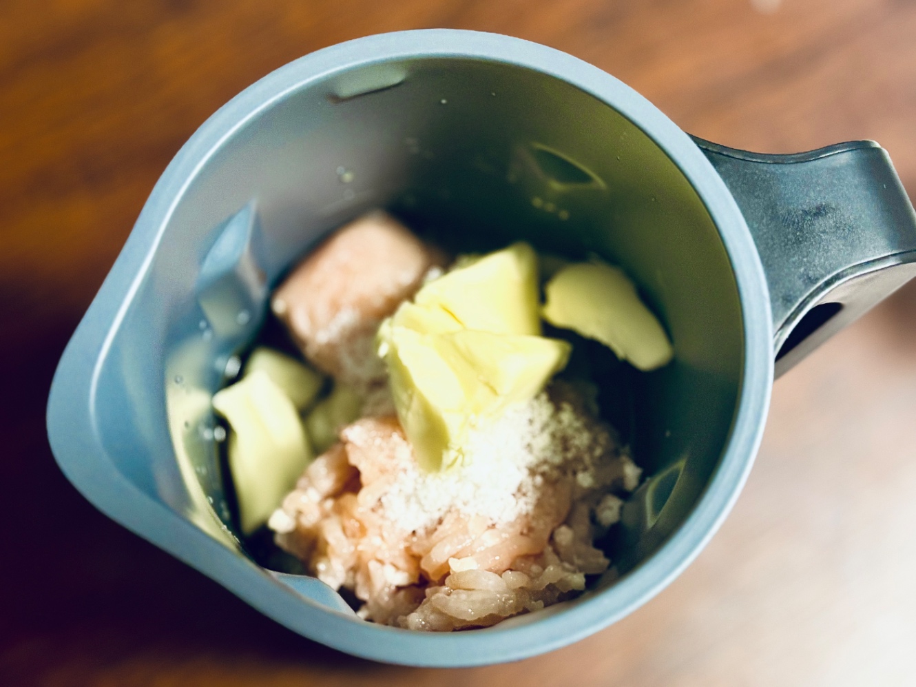 液体・柔らかい食材から順に、全部ポットに投入する。