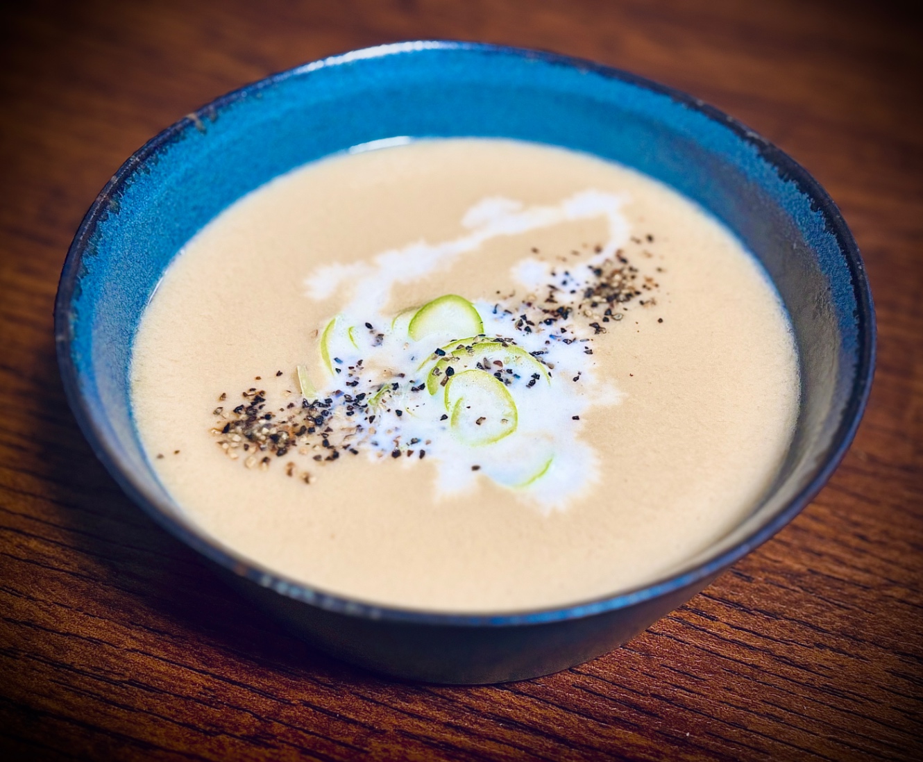 仕上げに少量のクリームとブラックペッパーを振ってみる。玉葱を使っているのに長葱を飾るのは冒涜的だったかもしれない。でも彩りが欲しくて、ごめん。