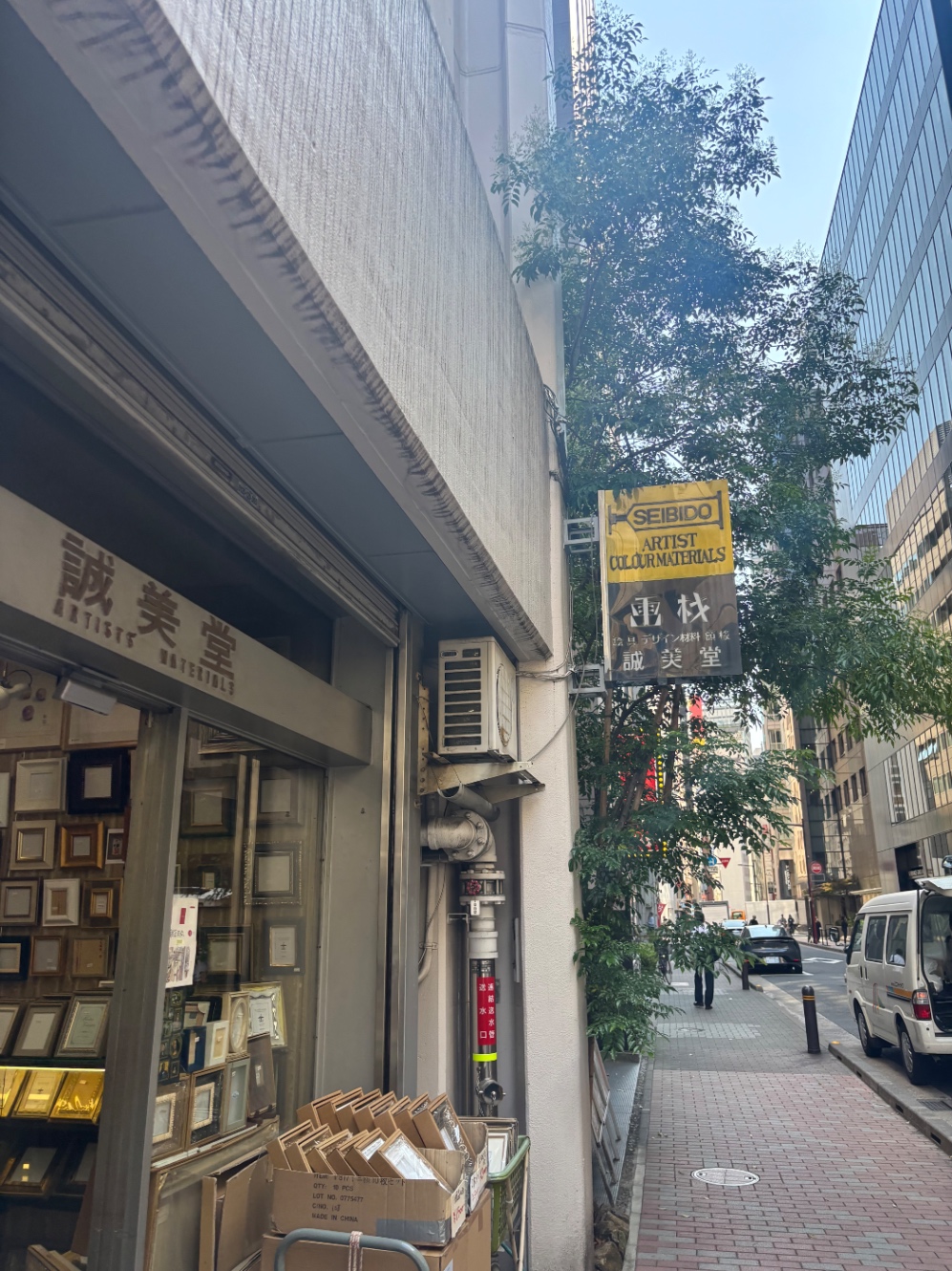 何か美術に詳しそうな気配を持つ友人に付いてきてもらい (この日のことは後日 別エントリに書く)、 老舗額縁専門店「誠美堂」へ。銀座マロニエ通りを1本内に入った所にある。