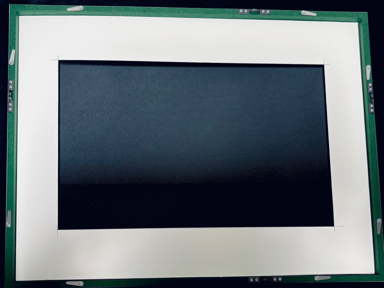 ここまで、位置の調節やごみや汚れを取り除くのに想定の50倍の苦労をした。だから平面美術製作を生業とする人たちは額装をプロに任せるのだな…と納得。