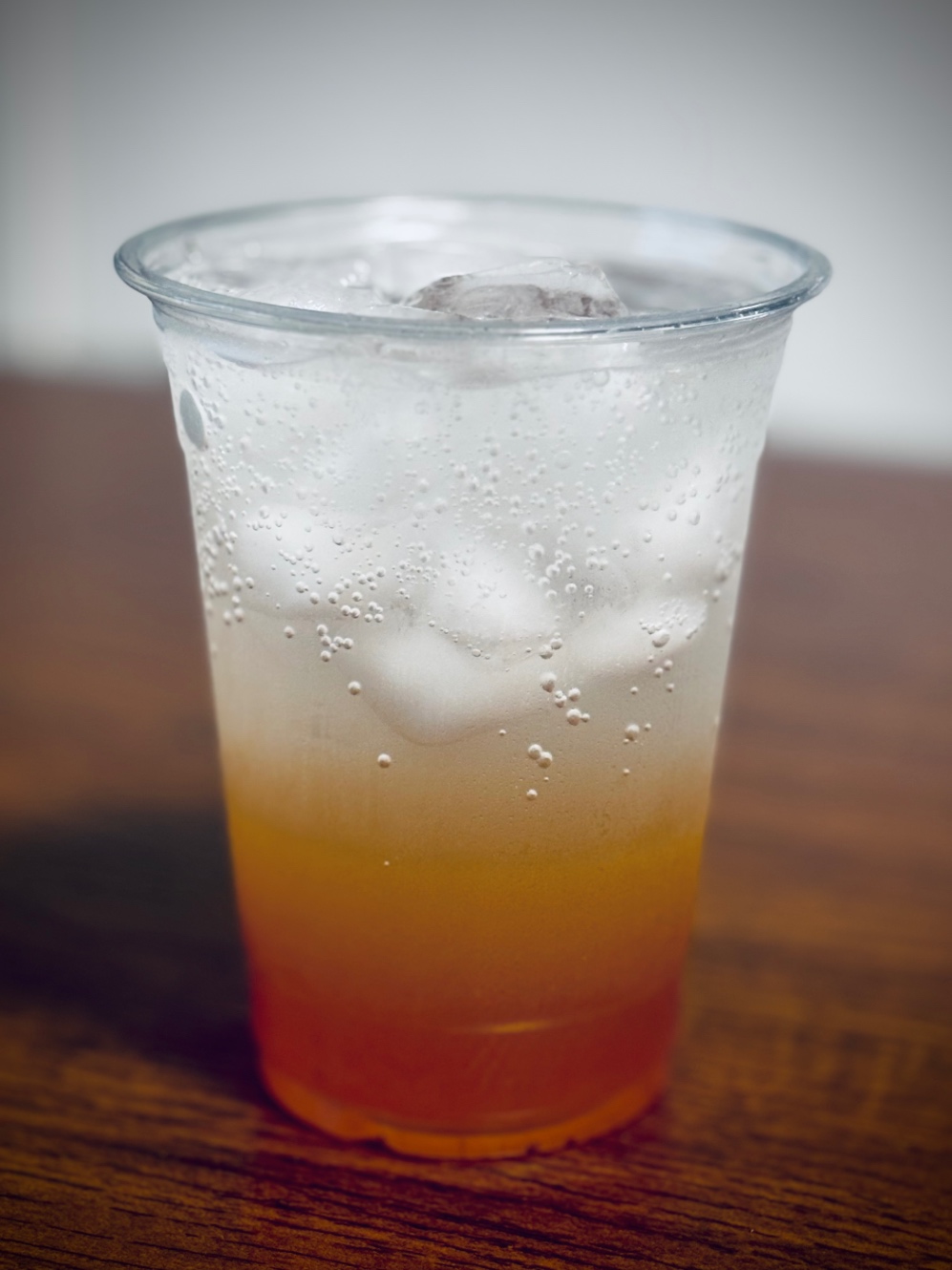 グラスにシロップを大匙3ほど入れて、氷、そして炭酸水を静かに注げば…