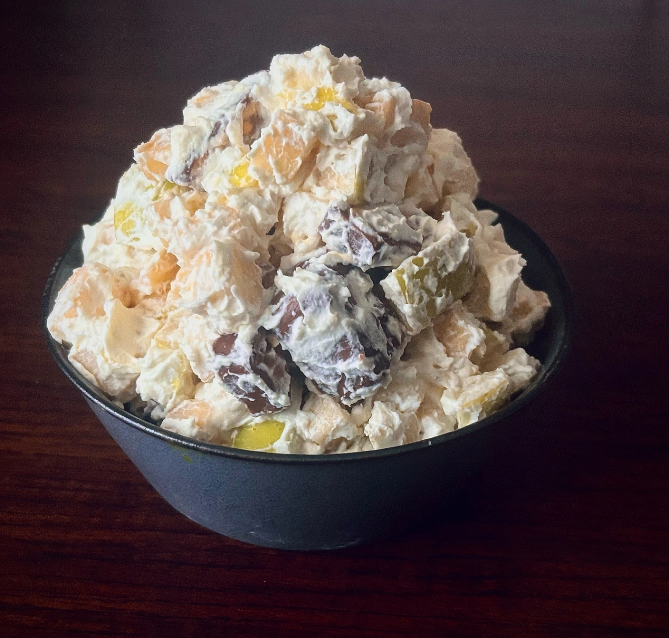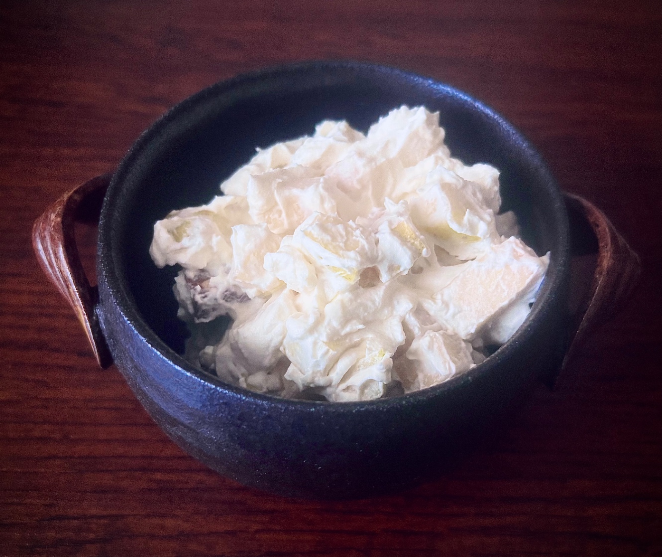 食べてみると、なるほど、酸味のあるリンゴの爽やかさと さっくりとした食感により、かなりフルーツサラダっぽさが演出されている。