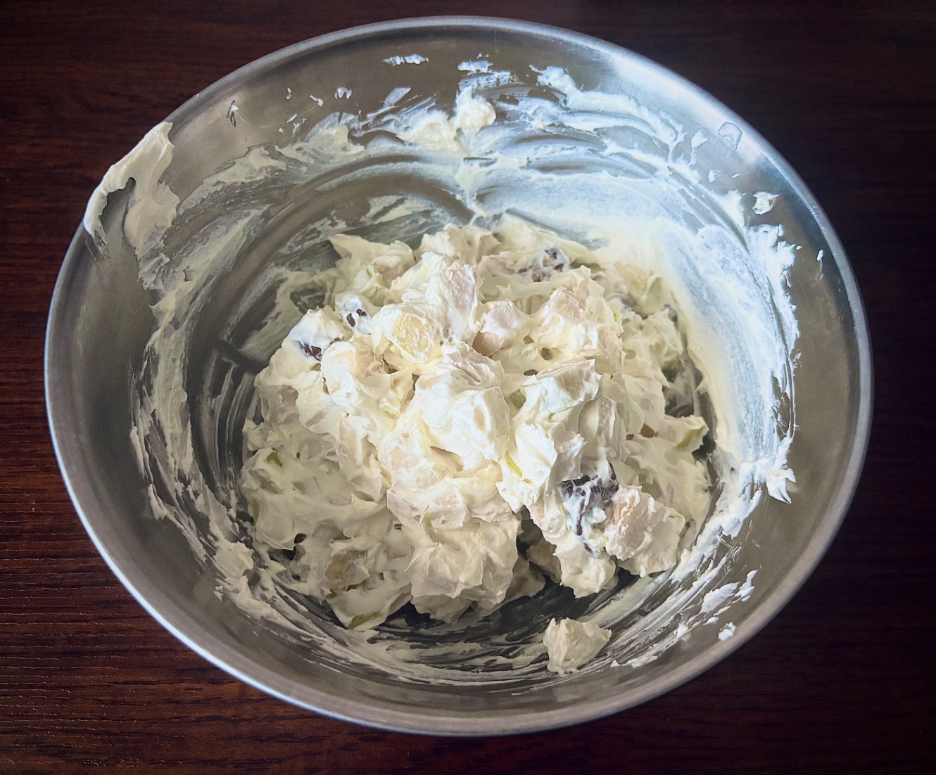 アメリカのレシピを調べてみると、ここにマシュマロやカスタードクリームを追加している人もいた。さすがにそうなってしまうと、もうリンゴだけに「サラダ」の全責任を負わせるには荷が重すぎるだろう。