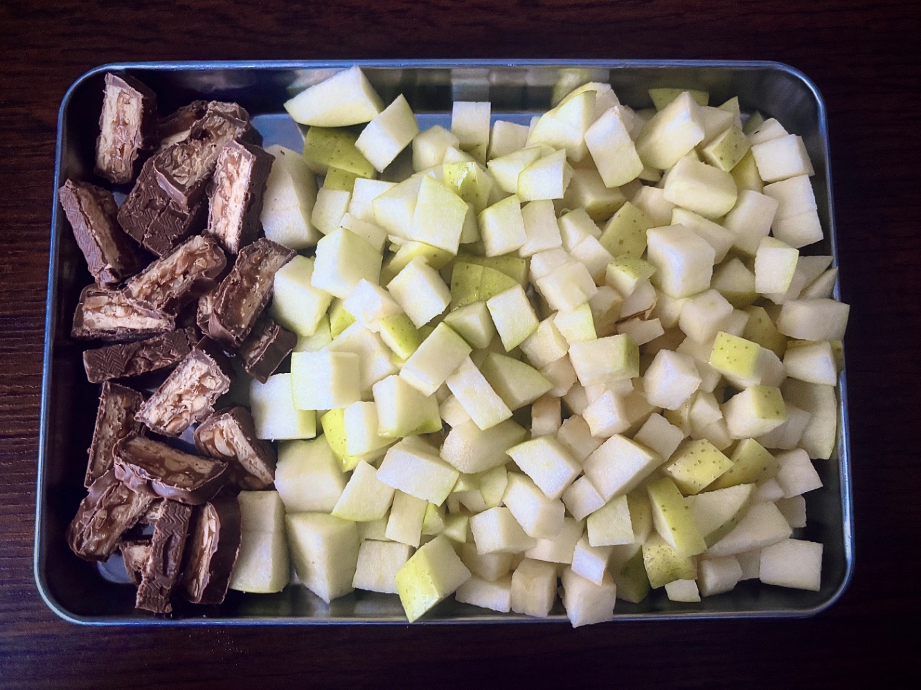 小さめにダイスカット。スニッカーズは薄めの輪切りにすると良い感じだ。