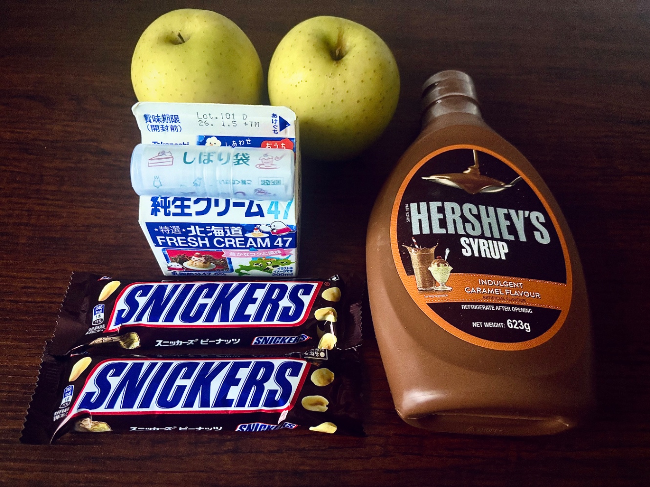 そこにスニッカーズの強烈な甘みと、中からとろけるピーナッツバターの風味。ナッツとリンゴは相性が抜群だ。濃厚さのある生クリームが それらを見事に纏めあげる。