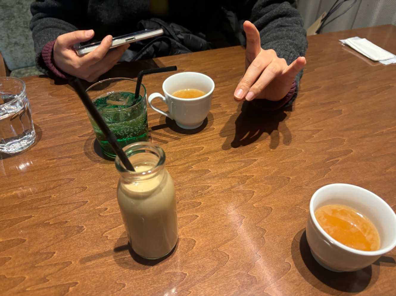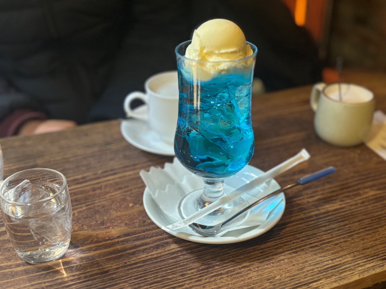 真冬にアイスクリームの乗ったケミカルサイダーを飲もうとする愚かなモンスターはこのおれだけ…である一方、犬怪さんは大胆にもホットミルクをオーダー。ベクトルの違う余裕の見せ方だ。
