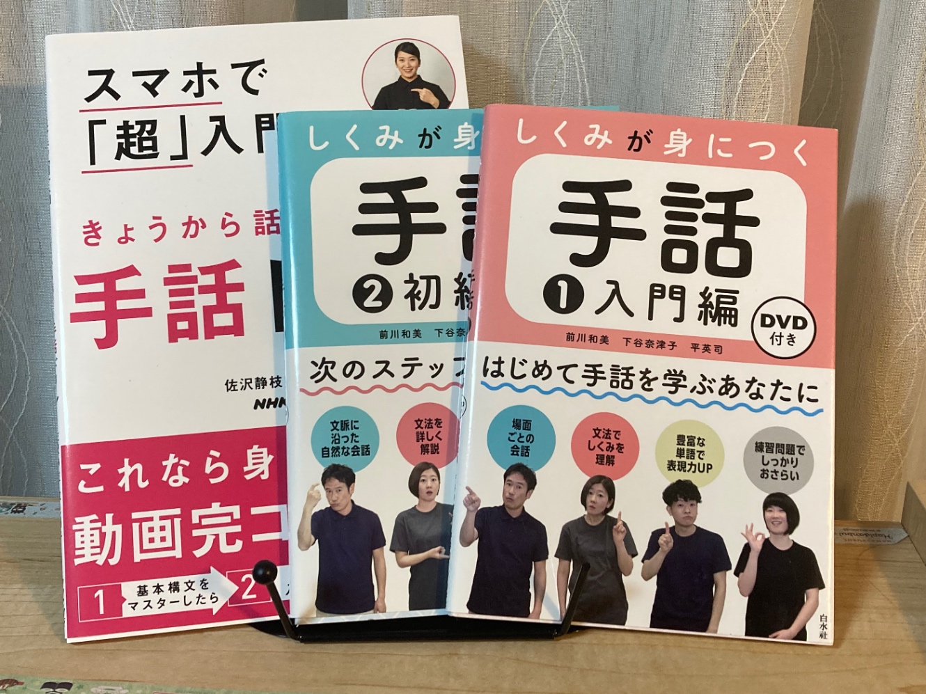 去年から日本手話を学んでいる。勉強しよう!と思い始めた当初にいくつか教則本を買ったうちの数冊。