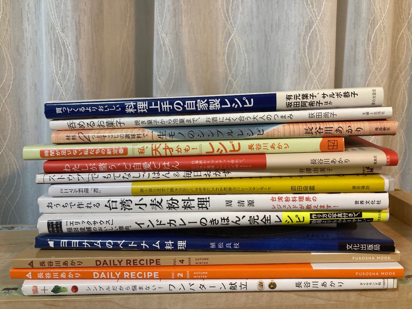 シンプルすぎる理由。積読とはそもそも自分の時間・精神状況などキャパシティの余剰に対して過剰な分の本なのですべての積読の根底に「買いすぎ」があるとは思うのだけど、読める時間の総量に対してレシピ本を買いすぎなんだよ。ほぼ読めていない本を写真に撮ったけど、この後ろに読みかけのレシピ本も同じぐらいある。