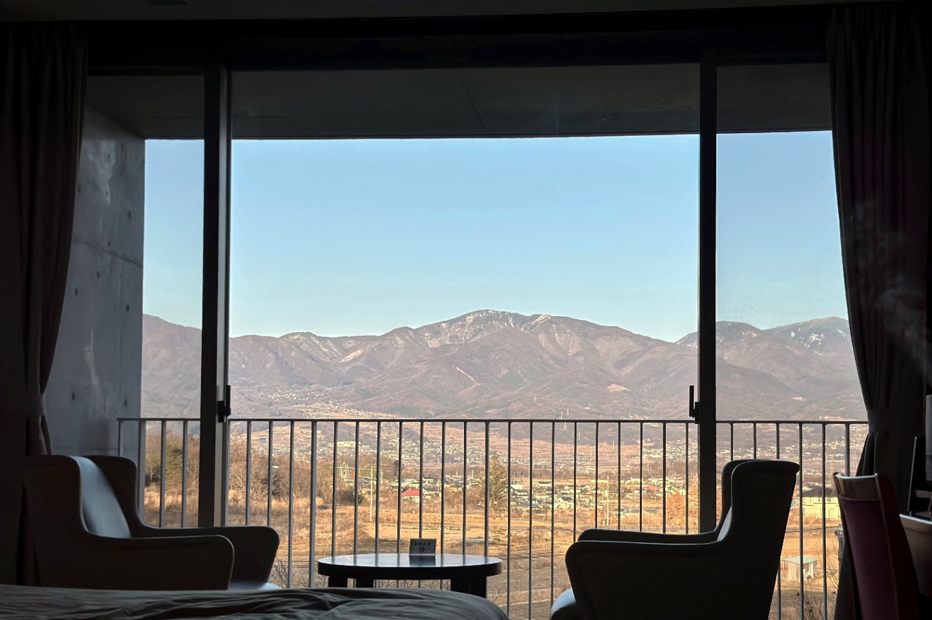 部屋からの景色。どの部屋からでも浅間山が見えるらしい。