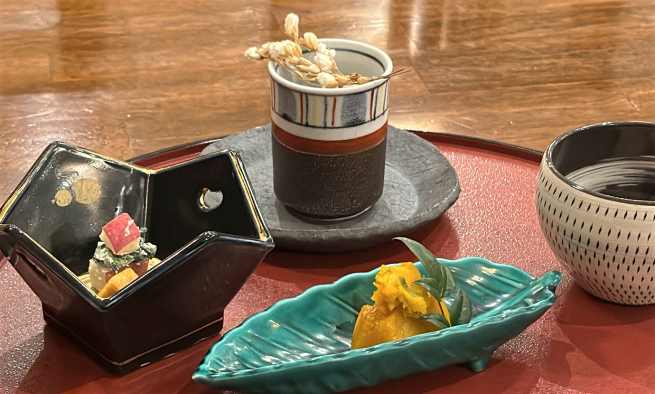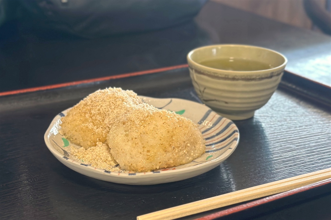 くるみおはぎとりんごの天ぷら。1日で2つも初めての料理を食べられて、これだけでかなり楽しかった。