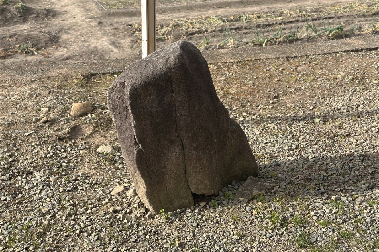 雷電が田畑への行き帰りに鋤の先につるして歩いた石。吊るして??歩いた??