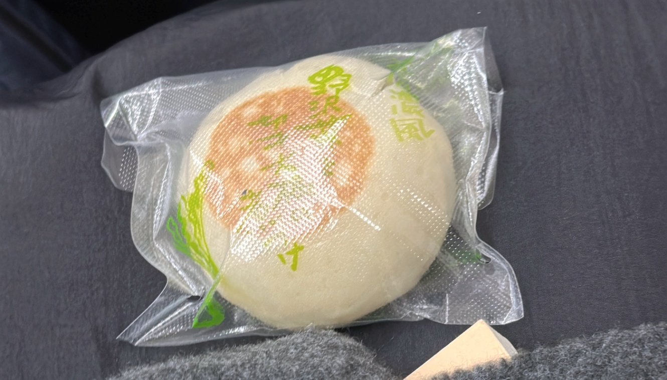 昨日花岡で買ったおやきを食べ損ねていたので新幹線で食べる。