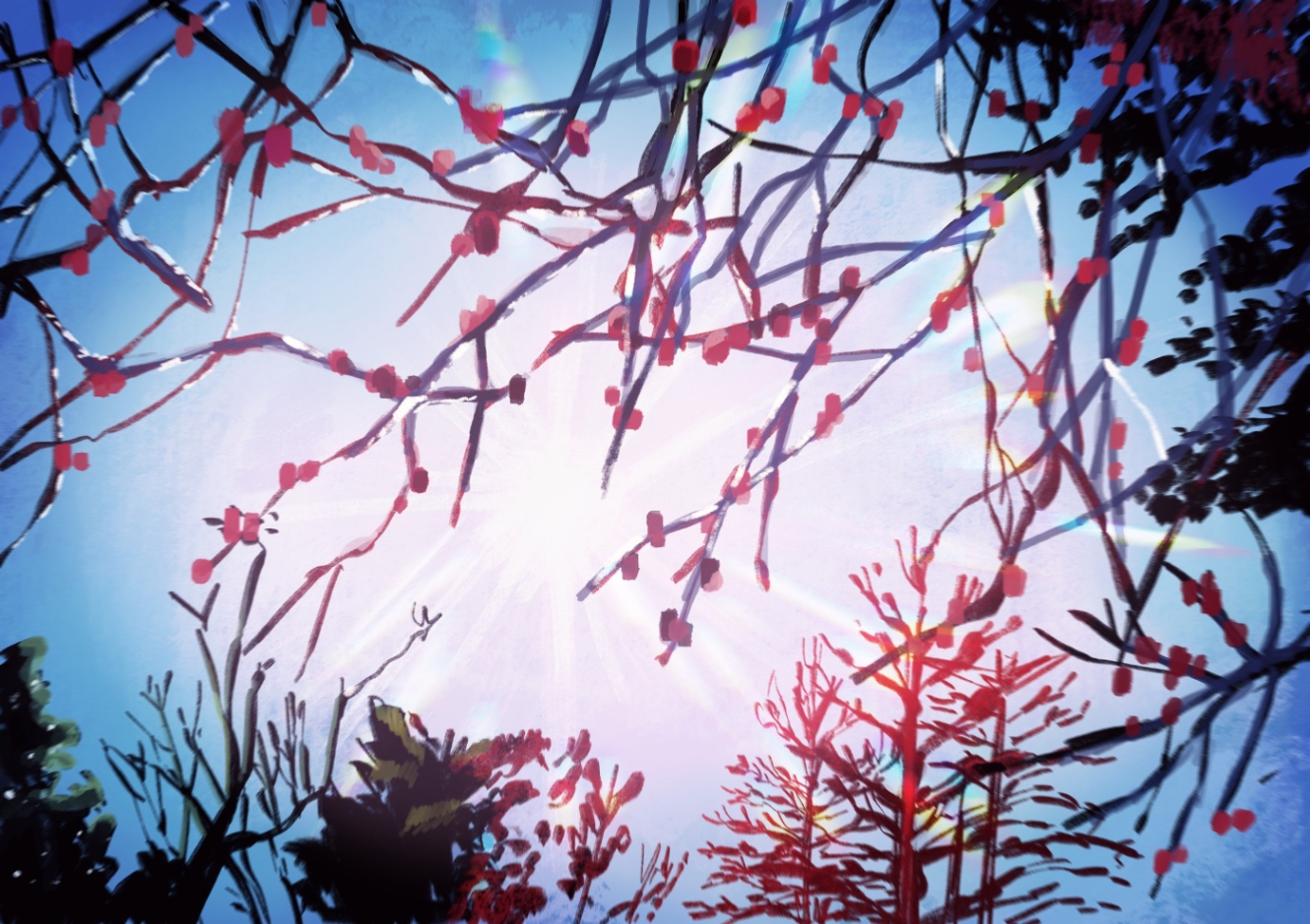 グレーの下塗り(1枚目)から乗算でカラーの乗せる+色味調整(2枚目)さらに上から加筆したのが⬇️