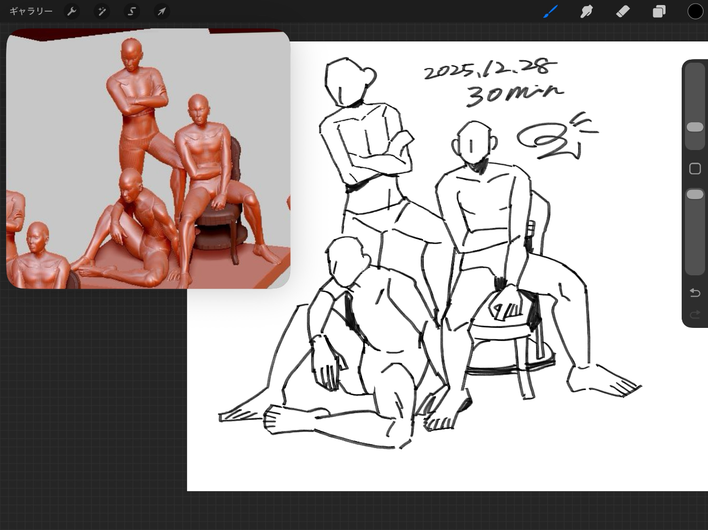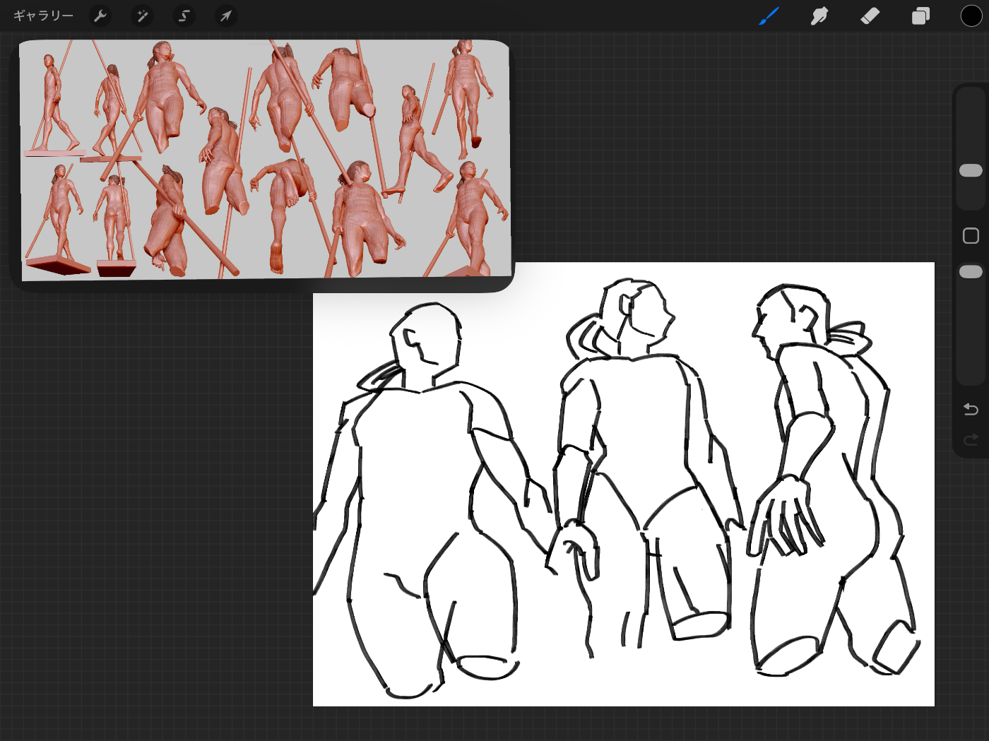 一番最近の活動。新しく知った3Dポーズ集のサイトから画像を選んで練習しました。