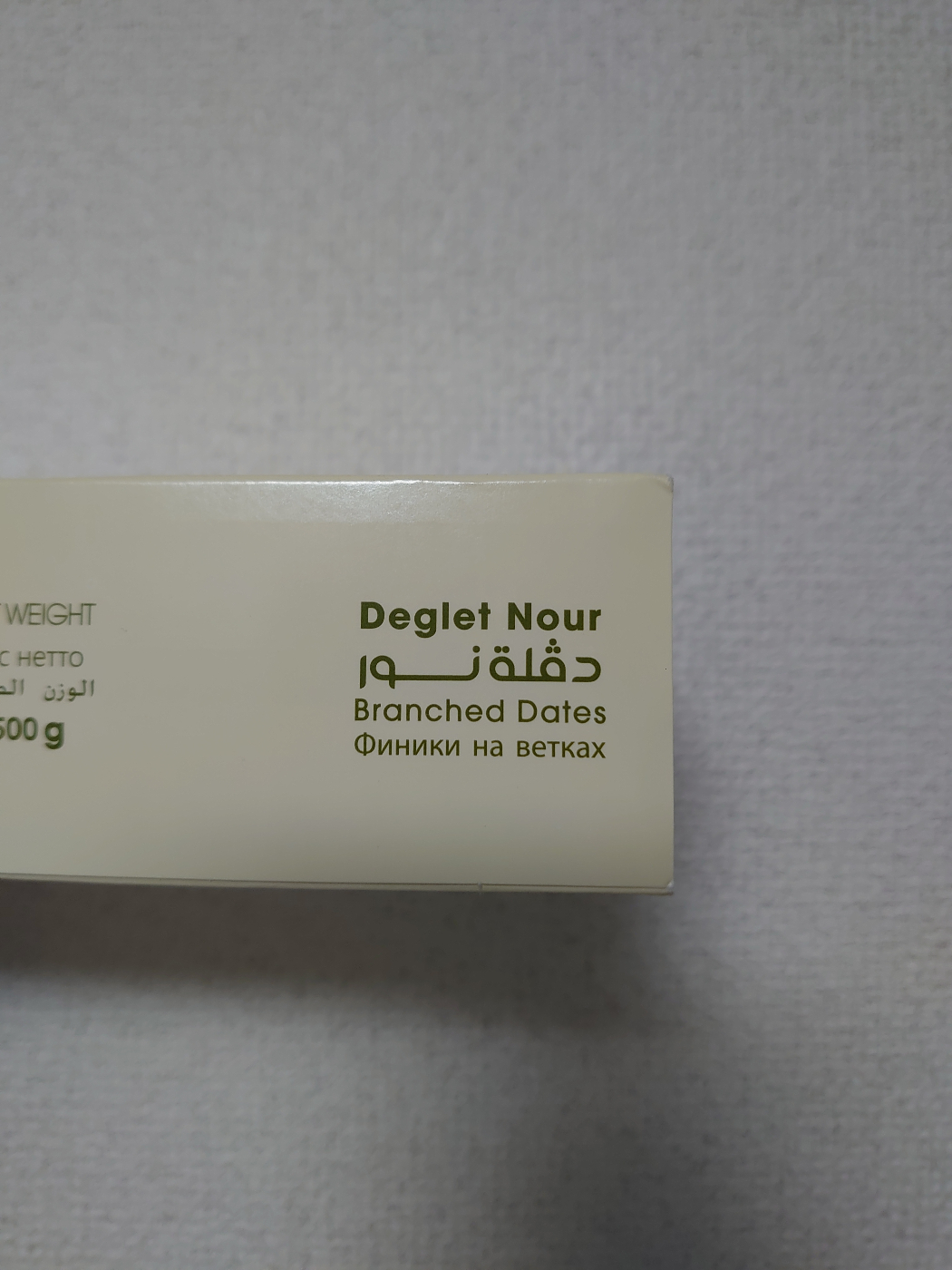 ここまできて憶測だけでチュニジアのアラビア語を語るのもアレなので、後で何か使えそうなの集めましたよ。チュニジアで生産されているデーツの品種「デグレットノア」(Deglet Nour)の商品パッケージ2種! 「グ」のとこで何か分かるはず!