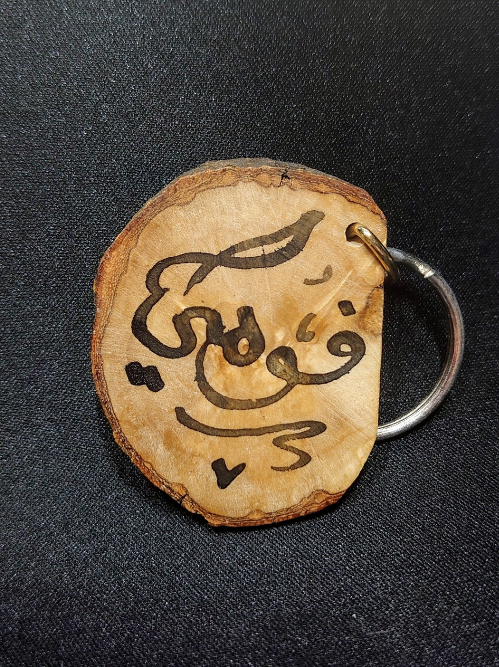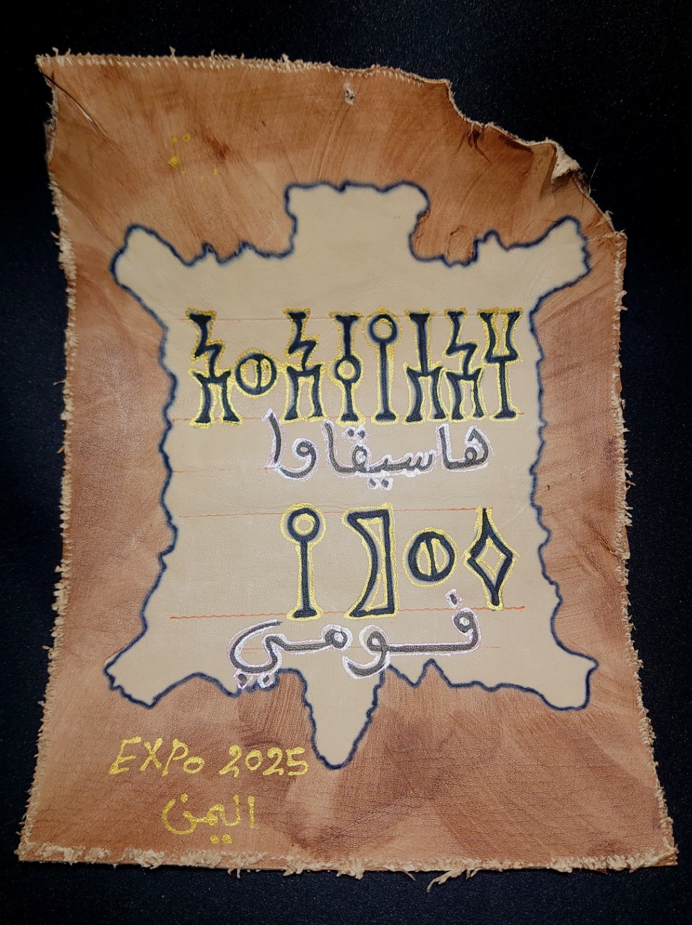 さて、私は特大サイズの革を選び、イエメンのイケおじにアラビア文字とヒムヤル文字で長谷川ふみちゃんの名前を書いてもらいました! それがこちら!