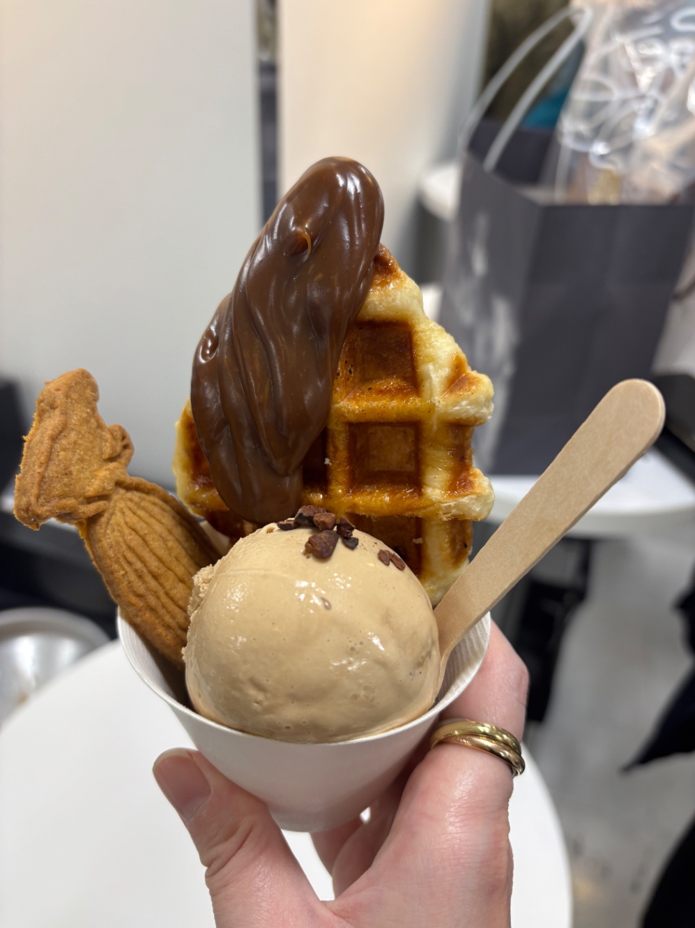 アイスとワッフルのセットをいただきました。キャラメルのソースがちょうどいい甘さとほろ苦さと塩気でたまらなかった。全然知らなかったんだけど代官山にお店があるらしいので行ってみたいな。