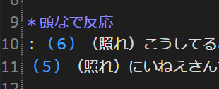 表情が切り替わったり、台詞が長くなったりすると効果が切れるので追加で記述するなどしました