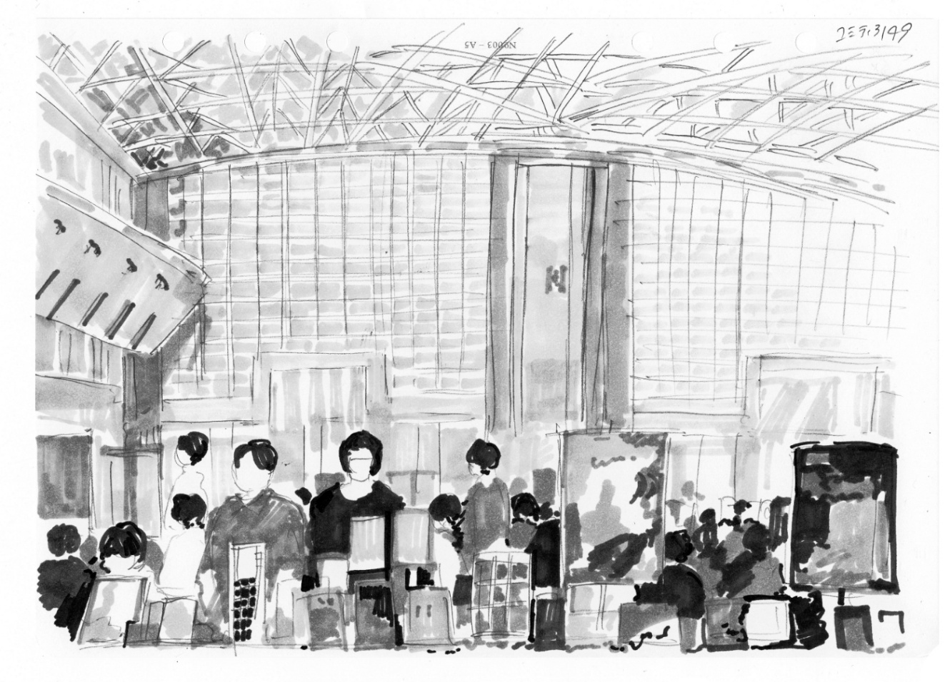 両隣へは一言挨拶しましょう。隣が来れば挨拶、隣に既にいれば自分が隣へ入った時に挨拶、です。「今日一日よろしくお願いします」的なものをします。