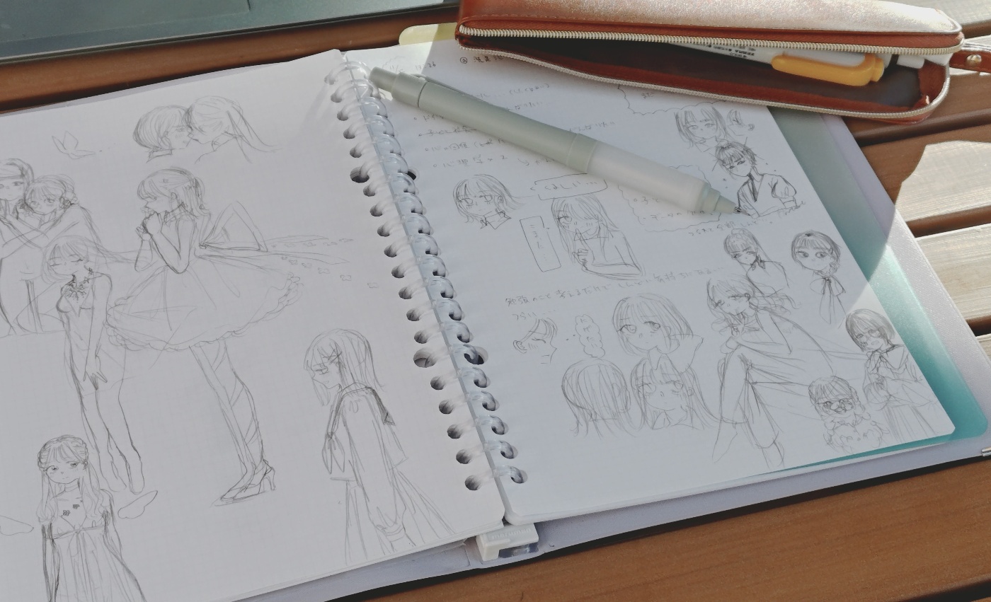 1時間くらいかけて、見開きを埋める(ほぼ絵)。