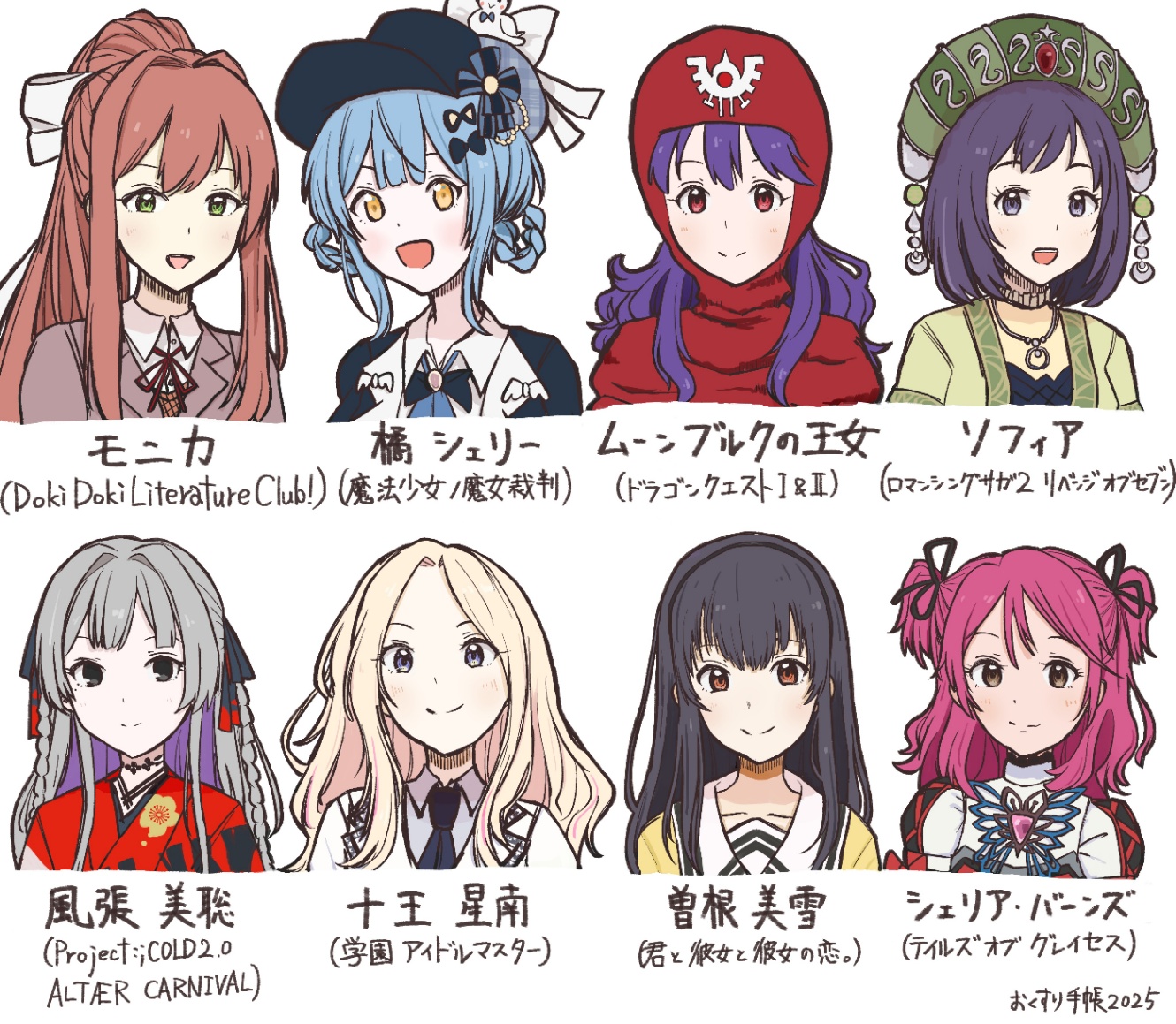 おくすり手帳とは、自分が出会ったコンテンツそれぞれで一番好きなキャラクターを記録したもので、それの2025年版です。