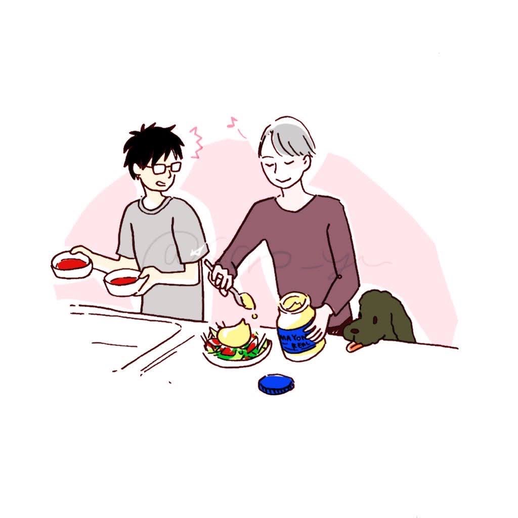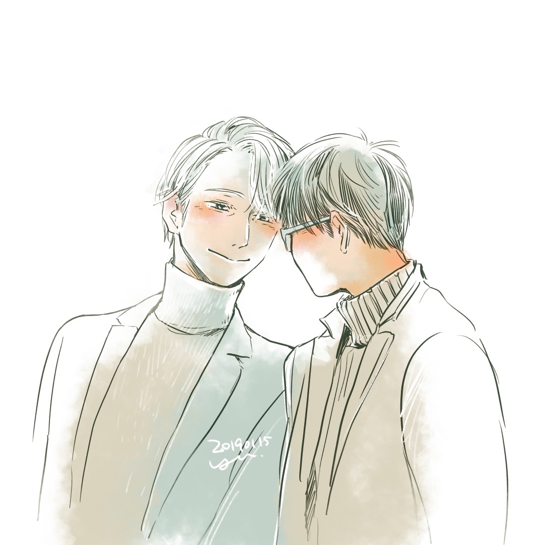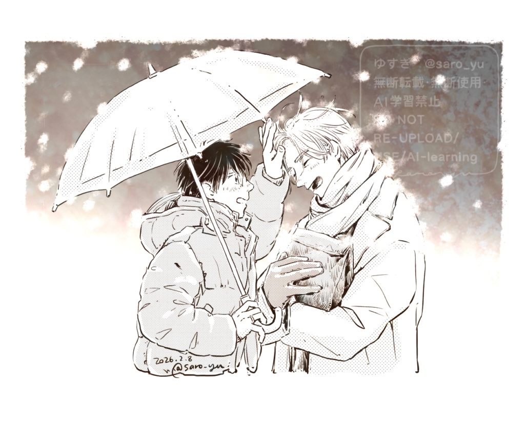 ふわふり2回目開催おめでとうありがとうございます🥳雪降りましたねえ。石焼き芋の歌が聞こえて傘ささず焼き芋を買いに行ったヴィクトルを迎えにいく勇利さんという妄想イラストログ勇利とヴィクトルがくっついてたり滑ってたりしてるのが多め。saroyuゆすぎの二次創作イラスト。