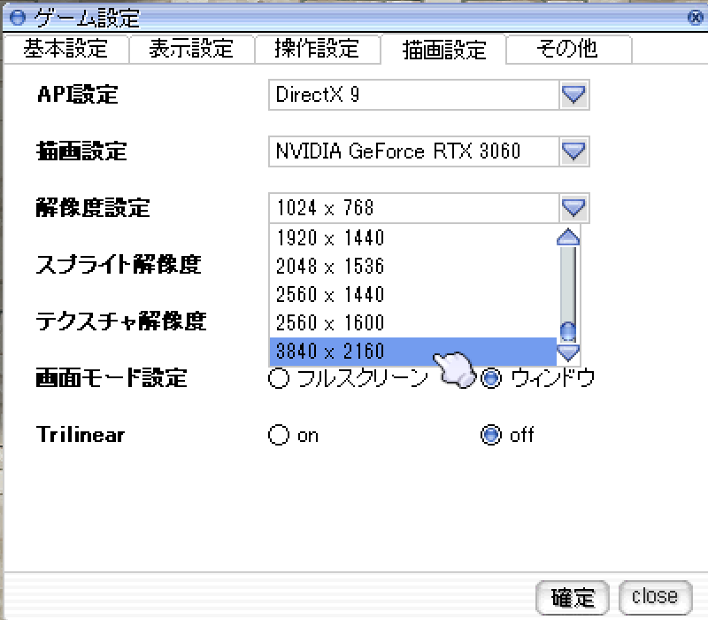まずラグナロクオンラインでは横解像度が2048ピクセルまで、という情報がありますが、これはどうも古いようです。今は一応、設定そのものは4Kまで可能です。