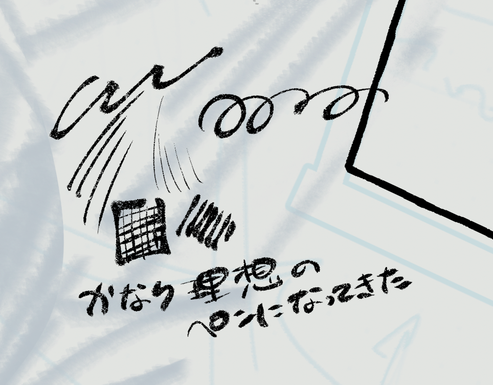 自作のペンをまた調整してた。かなり理想になってきた。今までのがちょっと筆致が柔らかいと言うか、強弱が少ないかも?と出来上がりの画面を見て思っていたので(描いてる時にはド拡大してるからついてみえるんだけどね)、もうちょっとだけ強弱がつきやすい感じにしてみた。さくざくペンV4、これでしばらく使って気に入ったらさくざくペンとしては集大成にしよう。次から別の名前にしよう。なんか、こう……何がいいかな。ペンの名前って決められないっす。世の製品開発者さんとかそのチームのデザイナーさんとかは、そう言う部分もすごい。