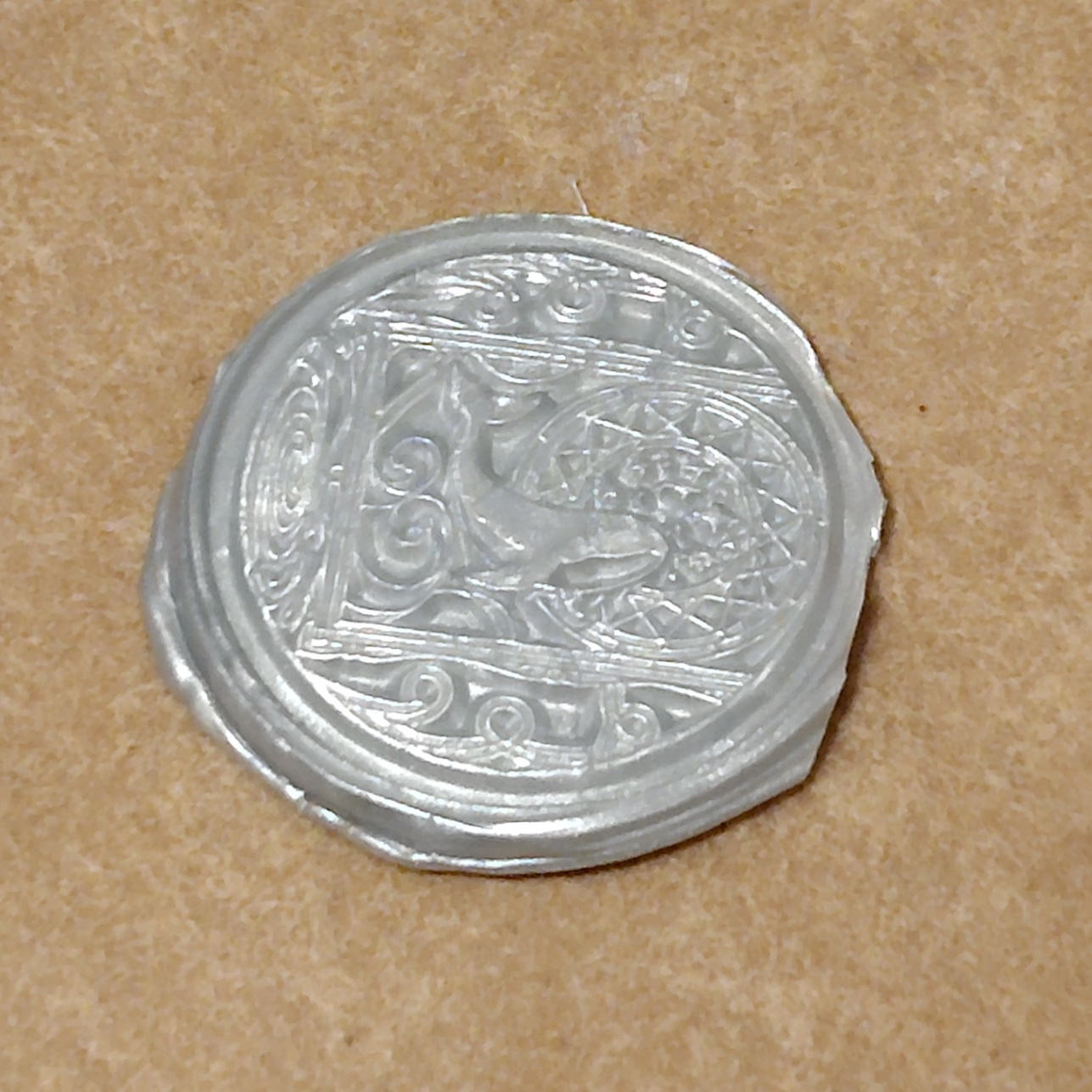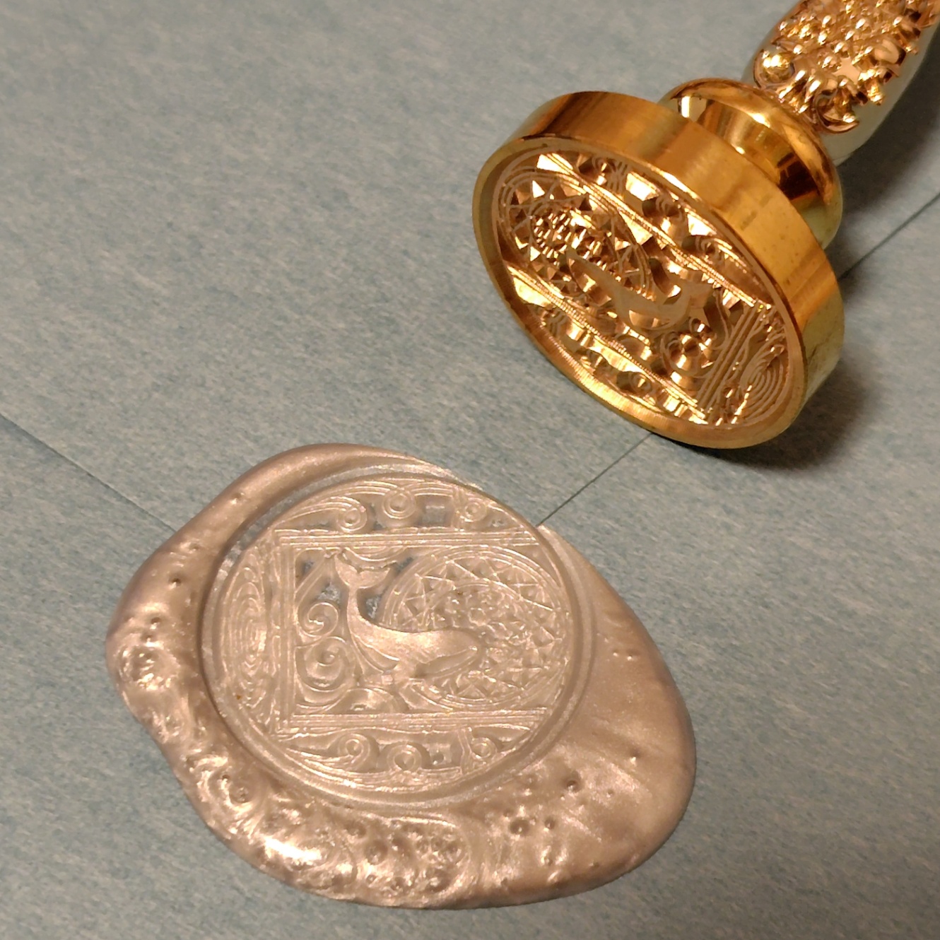 とりあえず本番でも使う予定の封筒に捺しちゃえ! なのが、こちら。柄は綺麗に出てるけど、バランスが悪い。全部で5回やってみたのだけど、いつもの作業机@布団でも、ちゃんとしたテーブルでも、バランスがいまいち納得いかなかった。買うか悩んでやめたプレートがあるほうが便利なことがわかったので、次に見かけたらゲット確定です。あと、溶かしてるあいだの気泡対策に、つまようじもあるほうが便利だなとか気づきがあった。