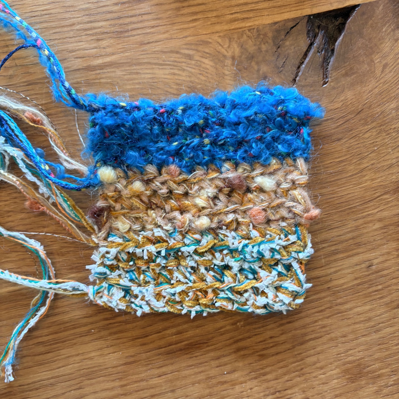 🧶今年から使い始めたほぼ日手帳に編み物でカバーを作りたくて、どの糸を使ってどのように編もうか試行錯誤しつつ、結局決まらず、試作で編んだ断片でコースターを作って終わった。
