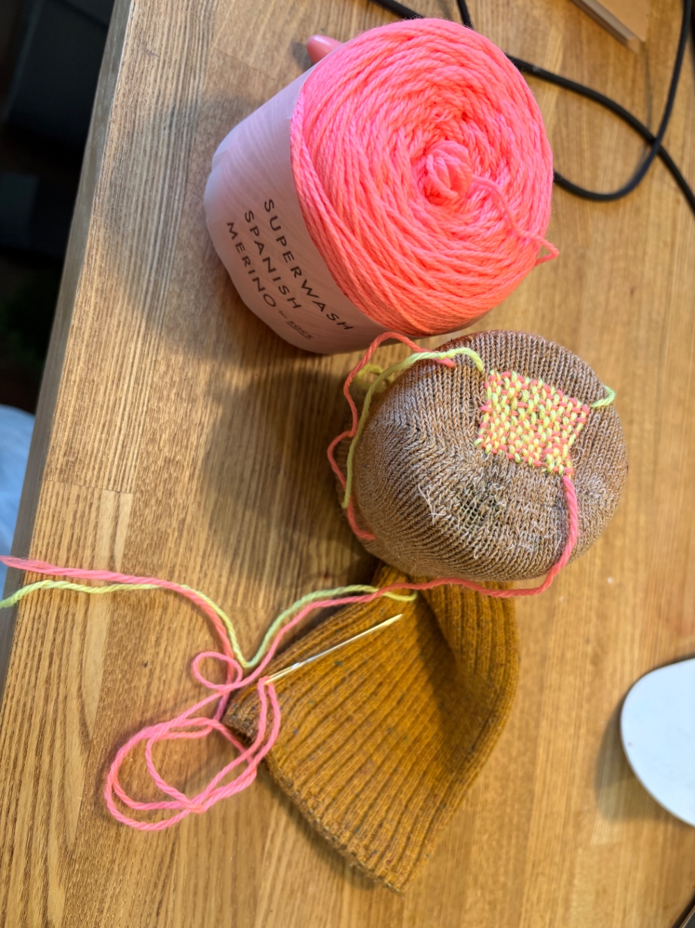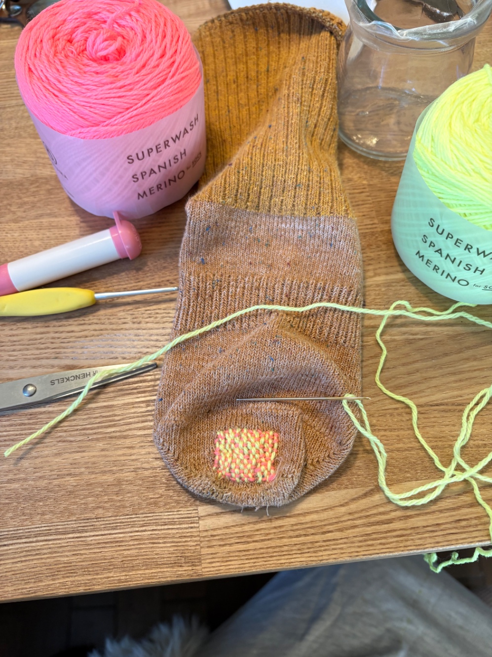 🧦 朝、くつしたを履こうとしたらクリティカルな穴があいており、これは以前からインスタなどで度々見かけて試してみたいと思っていた「ダーニング」(オシャレなツギハギのことをこう呼ぶらしい)をやってみるチャンスと思って、朝から挑戦してみたら、想像の10倍くらい困難で(針仕事苦手マン)、午前中を全てダーニングに投入してしまった。
