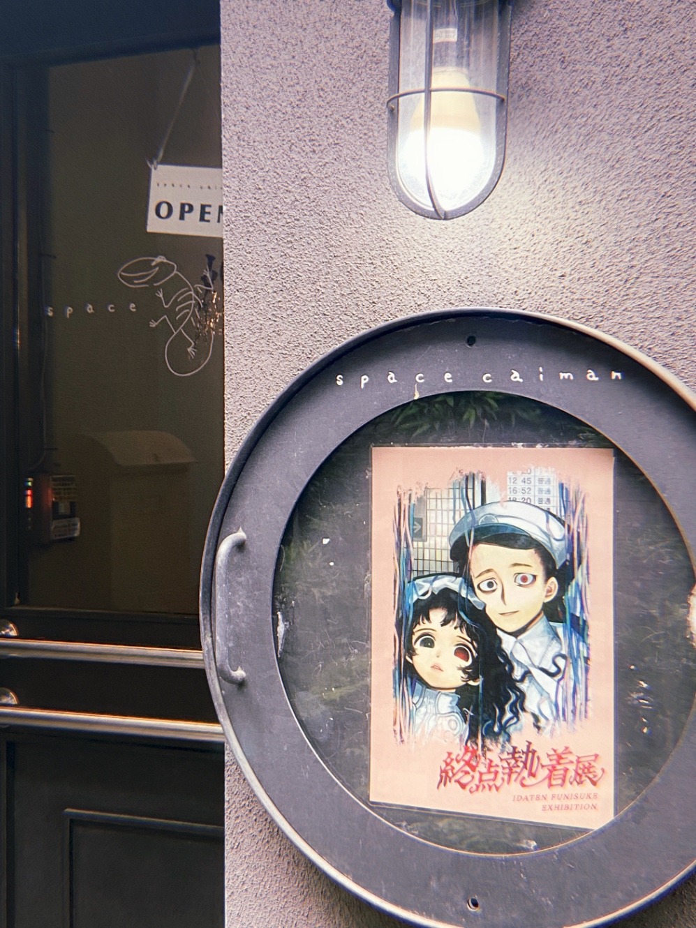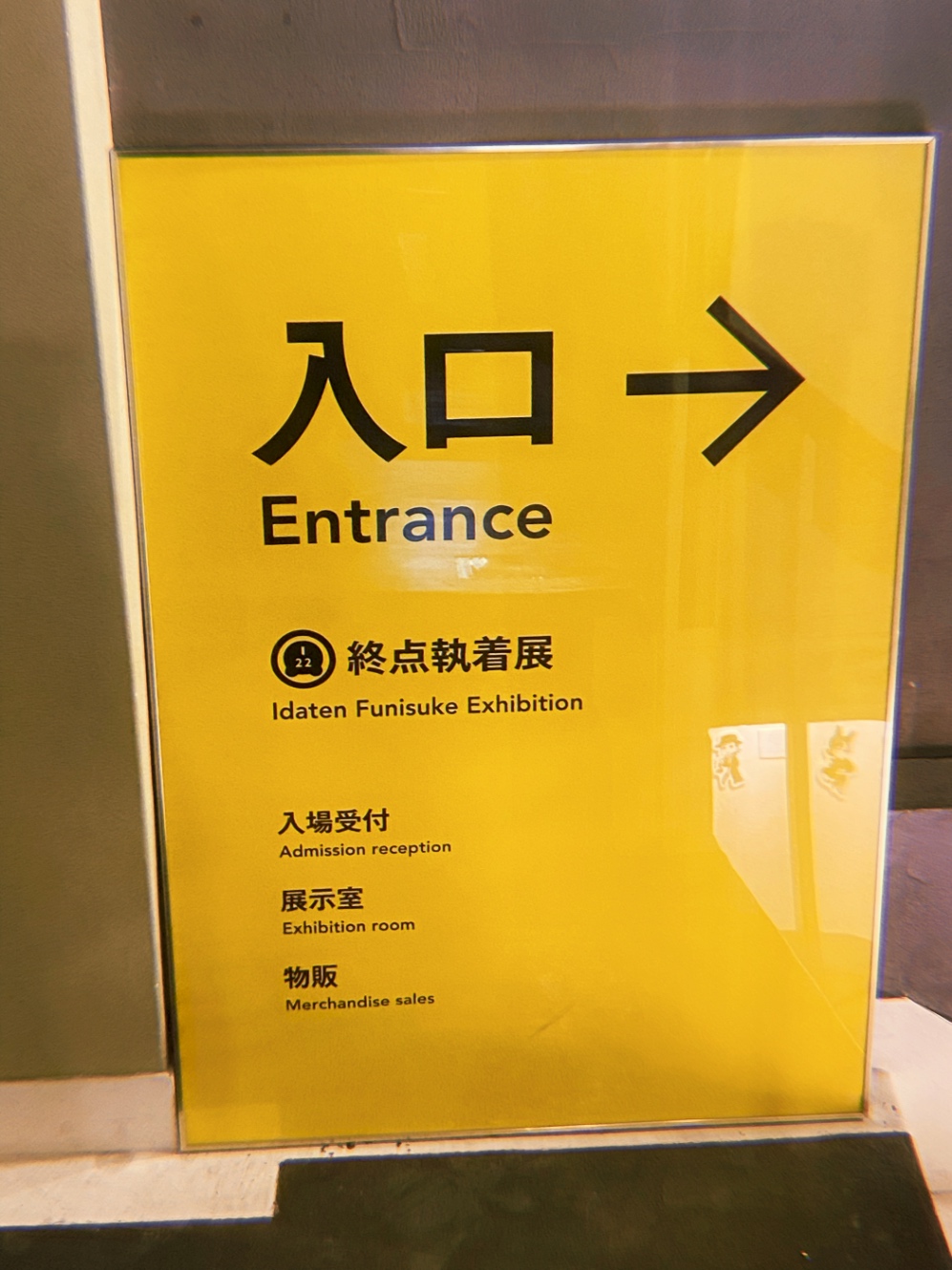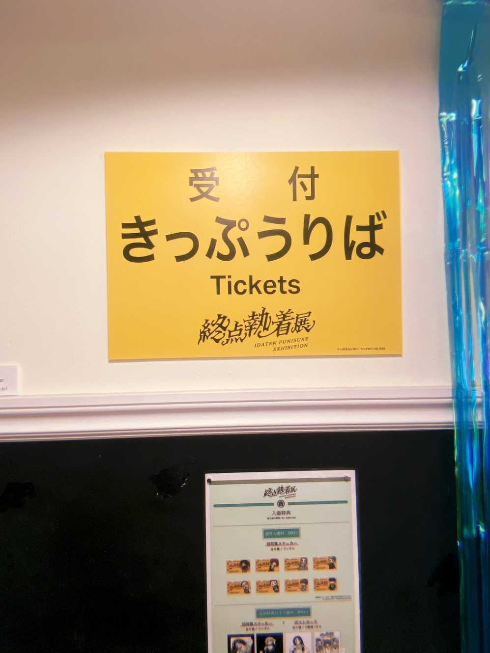 いだ天ふにすけ先生の個展、終点執着展に行ってきました。いだ天先生の作品はどれも好きなのですが、『そういう妖怪』のカルオちゃんが特に好きな女の子なので今回の個展はすごく楽しみにしていました。終点終着展という名前にちなんだ駅構内風の案内も素敵でした。