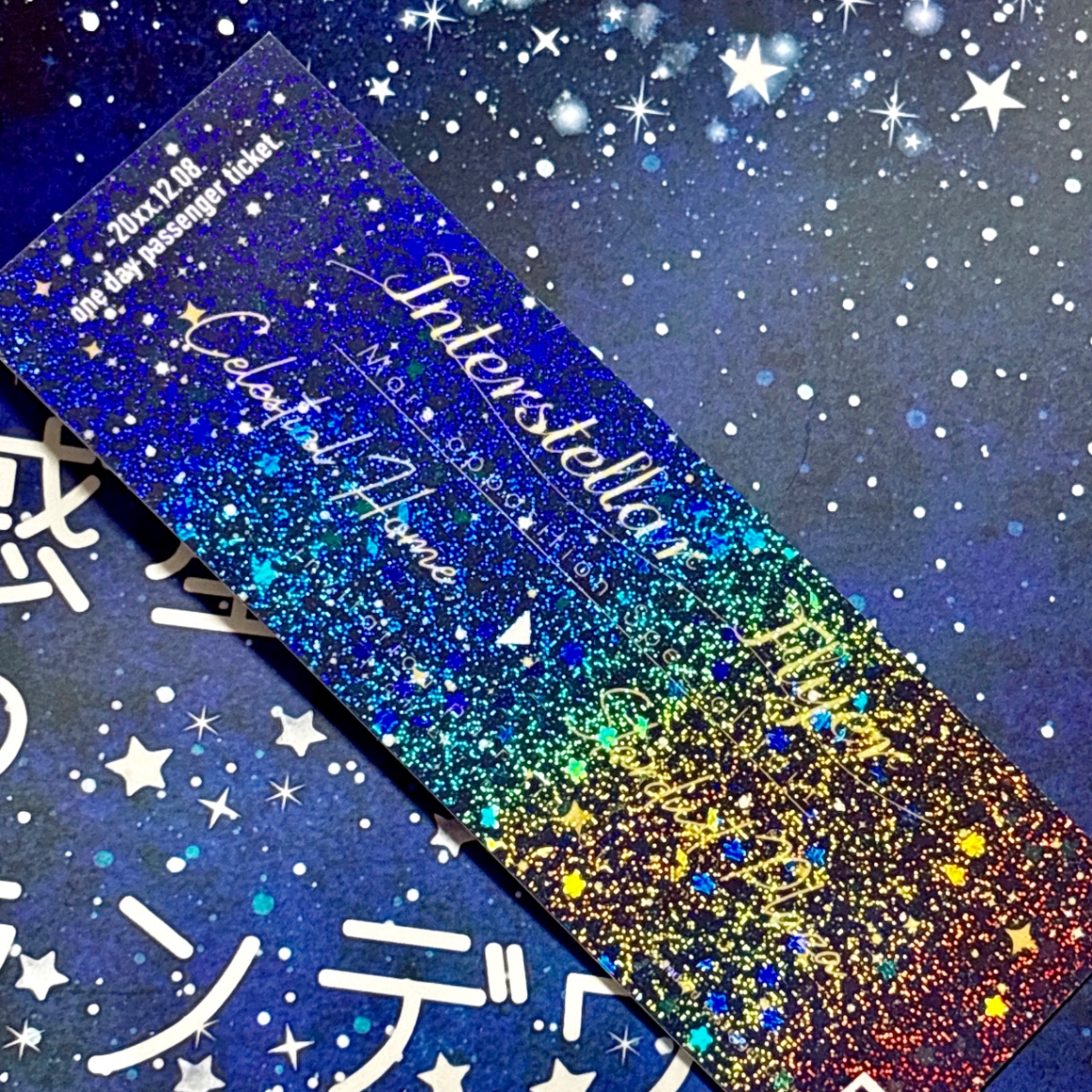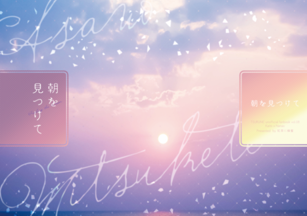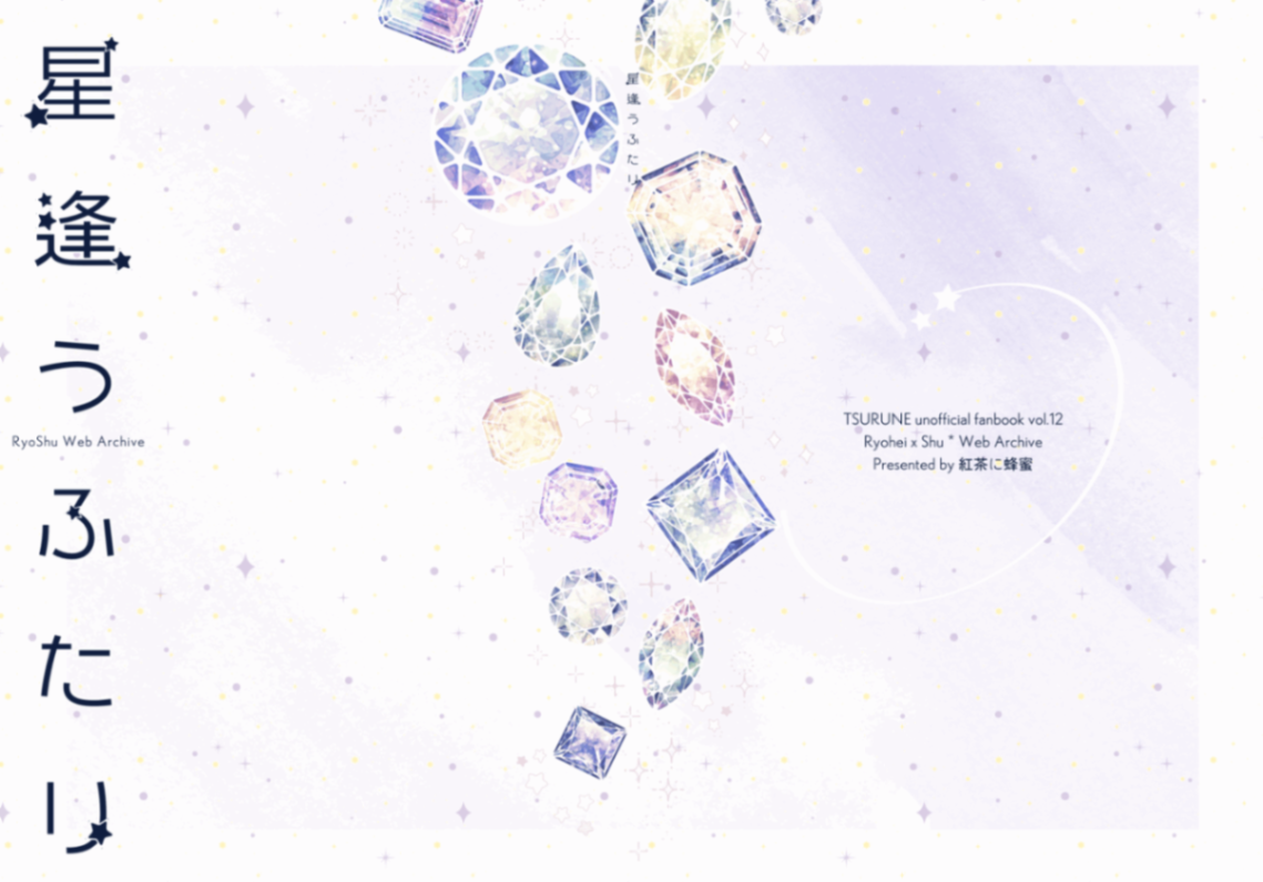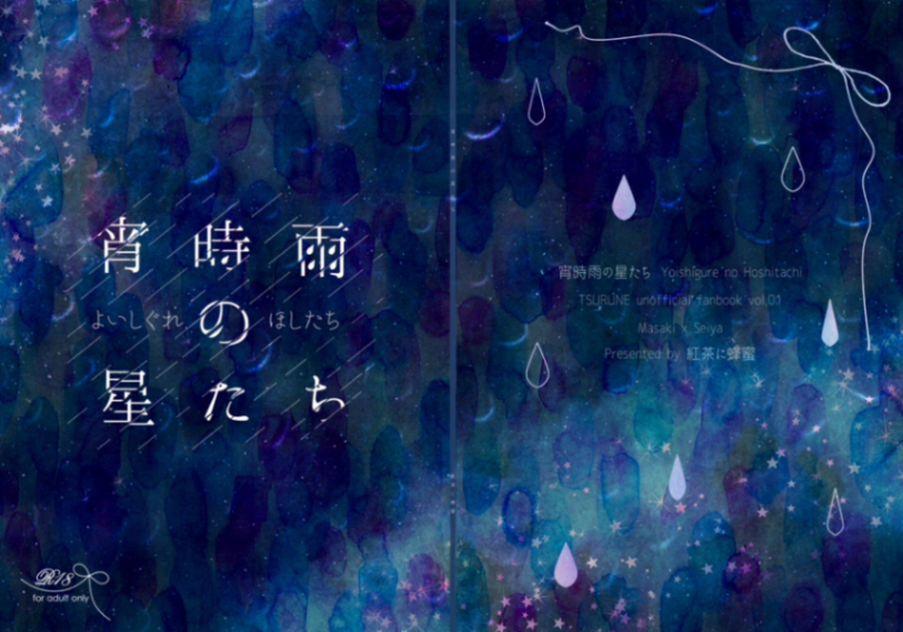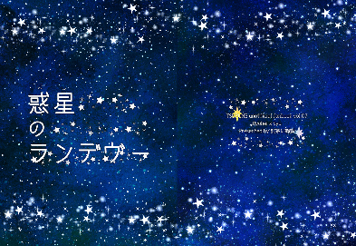 3年ぶりの同人誌!!とにかく中身が終わらず〆切の遅いところを選び、本そのものに特別なことはない。これは宇宙を走る電車に乗って旅するSF(少し不思議)話だったので、チケットを模したキラキラしおりを作った。作中でチケットが出てくるページに挟んで頒布するという粋な(?)演出。スターダストホロPPのしおりはプリントオン。このカプのイメージは「宇宙・星」です。遊び紙は受けのメンカラ。突貫で作った表紙なので背表紙にあたるところが不自然になっており、担当者さんが「真ん中に線が入ってるように見えますが大丈夫ですか?」と確認の連絡をくれた思い出。背表紙だからいいか…と安易に判断した結果、無駄な稼働をかけて申し訳ない。